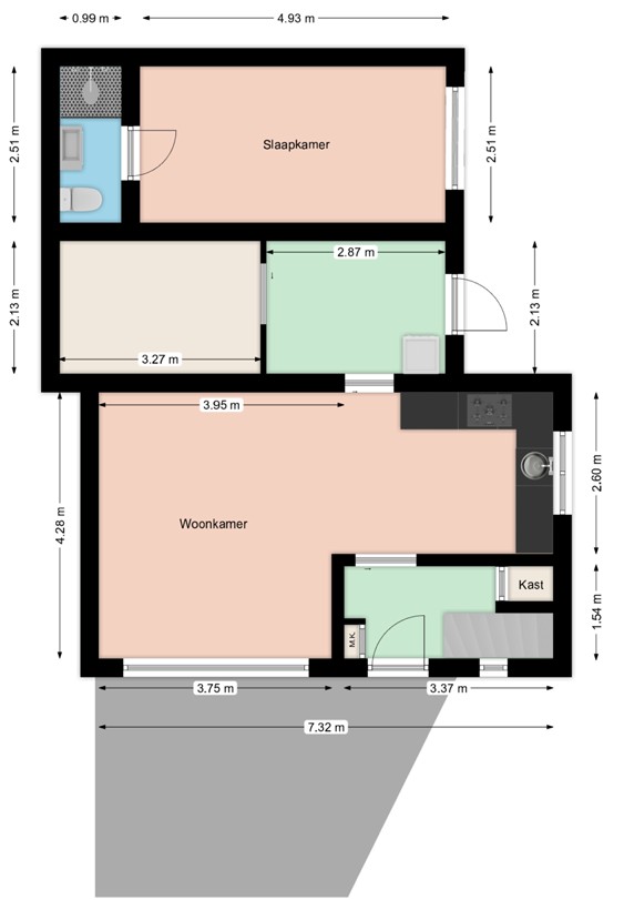 Indeling: entree in hal met toegang tot de woonkamer en keuken, opbergkast en trap naar de bovenverdieping.