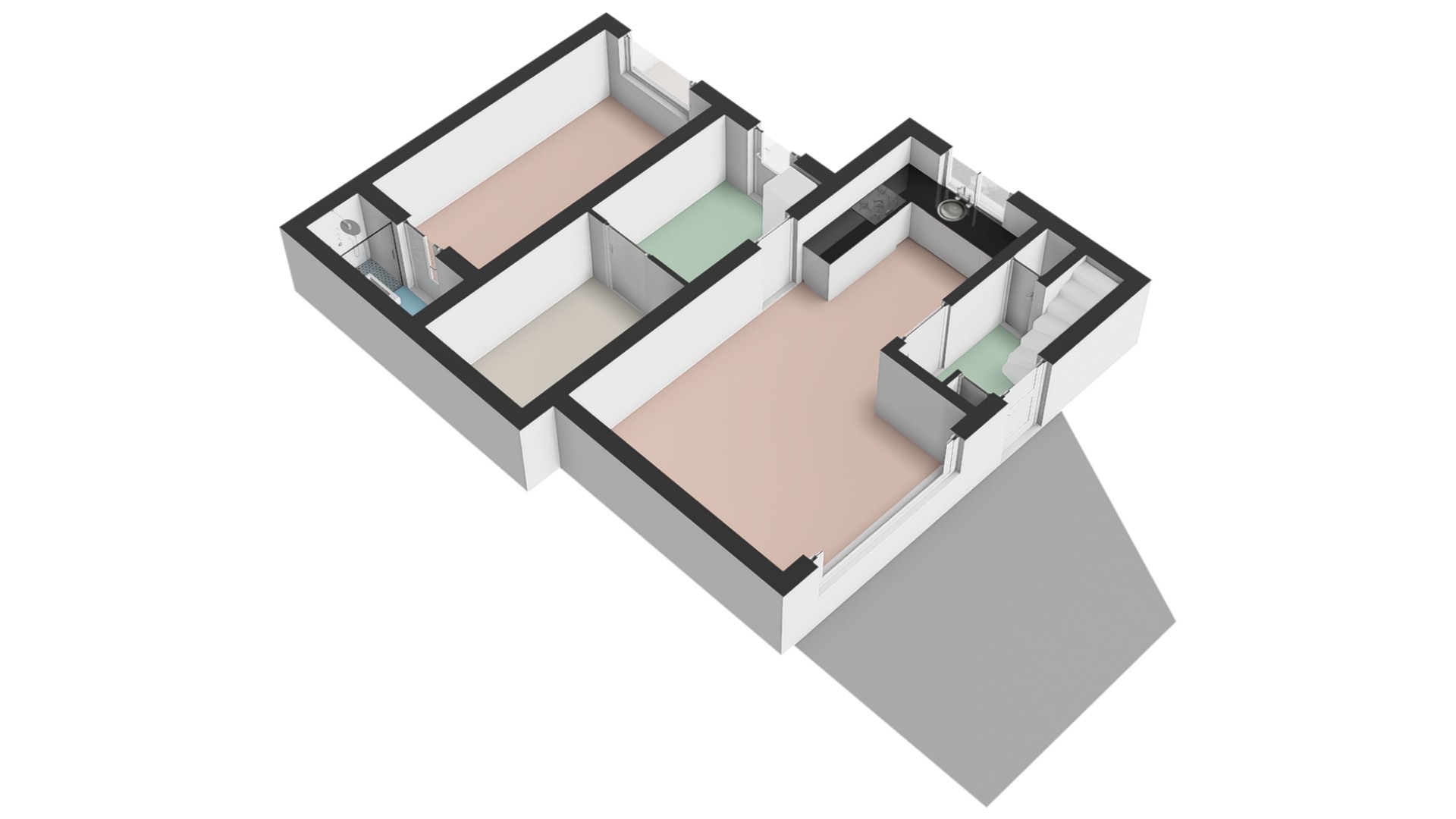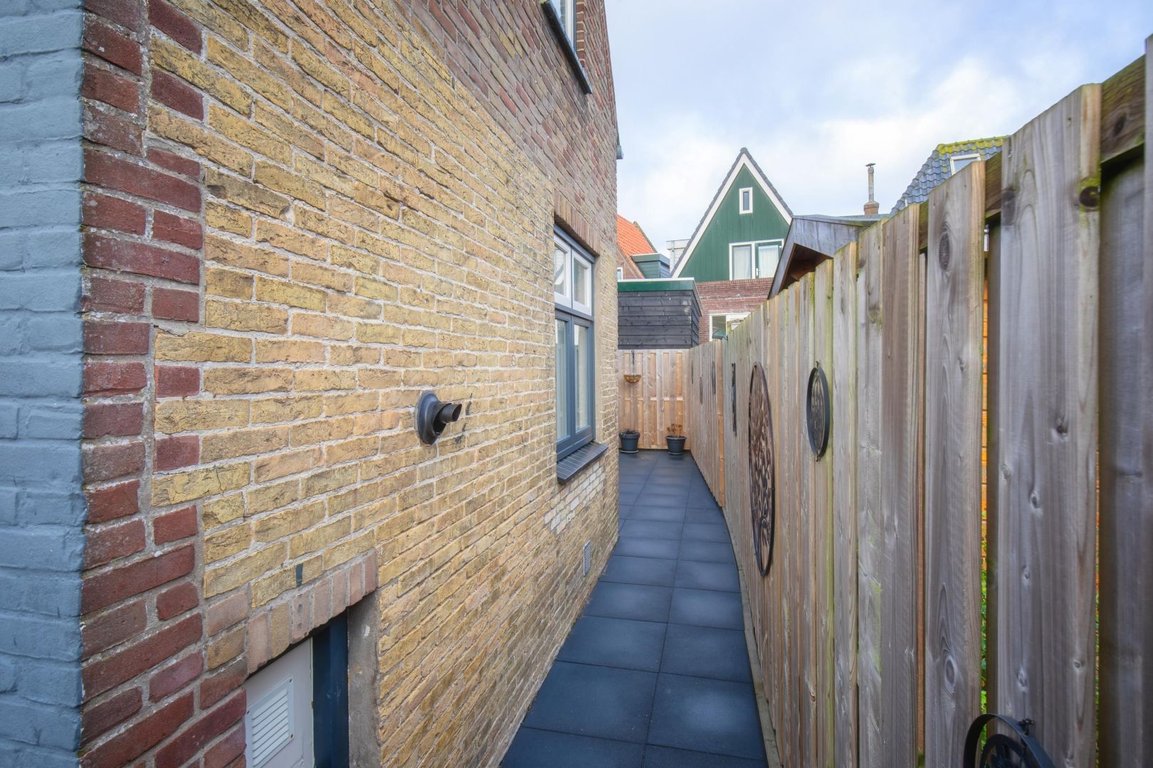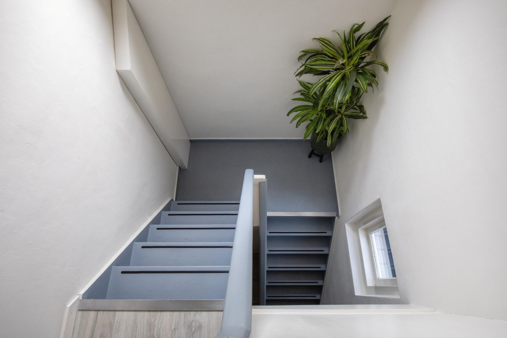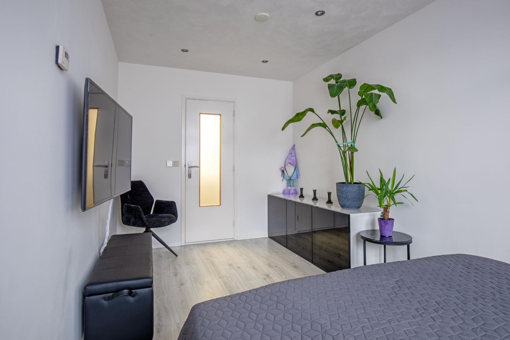 Aan de achterzijde van de woning bevindt zich een zeer ruime en comfortabele slaapkamer met een nette, aangrenzende badkamer. De badkamer is voorzien van een inloopdouche, wastafel en toilet en biedt alle gemakken voor dagelijks comfort. Vanuit de slaapkamer heeft u via een vlizotrap tevens toegang tot de bergzolder, ideaal voor extra opslagruimte.