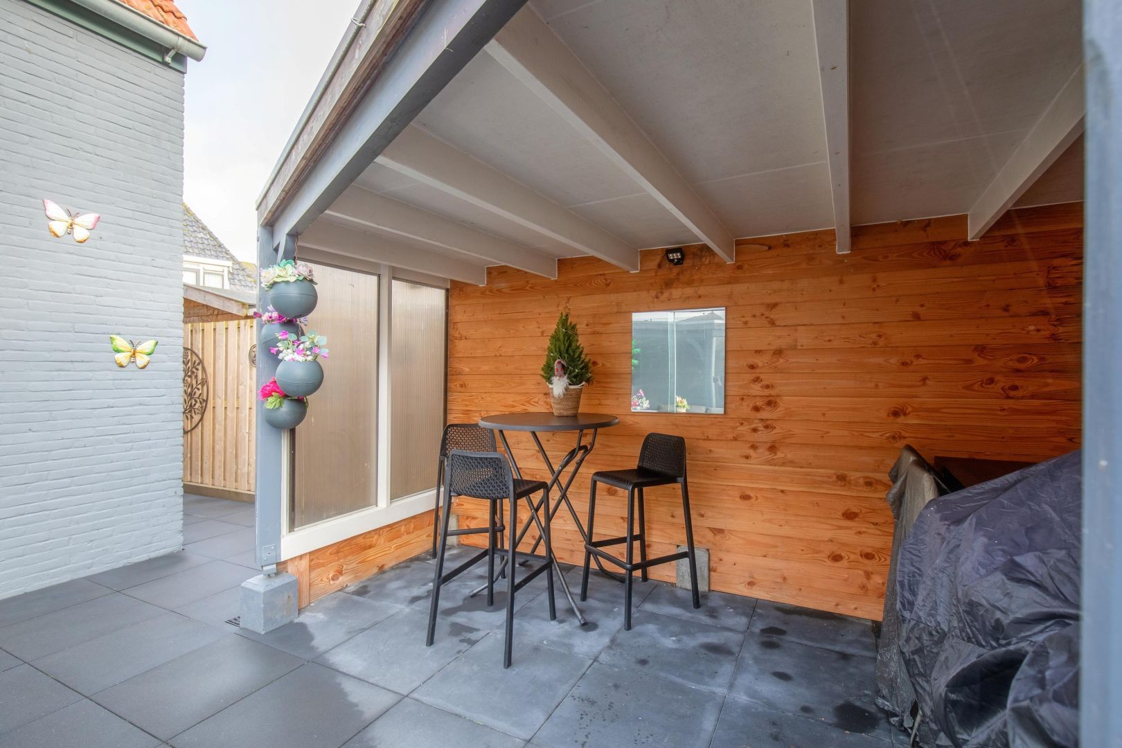 In de tuin bevindt zich tevens een gezellige overkapping met voldoende ruimte voor een buitenkeuken. Daarnaast is er een praktische berging aanwezig van circa 8 m², voorzien van elektra. Aan de voorzijde van het perceel is bovendien ruime parkeergelegenheid voor twee voertuigen.