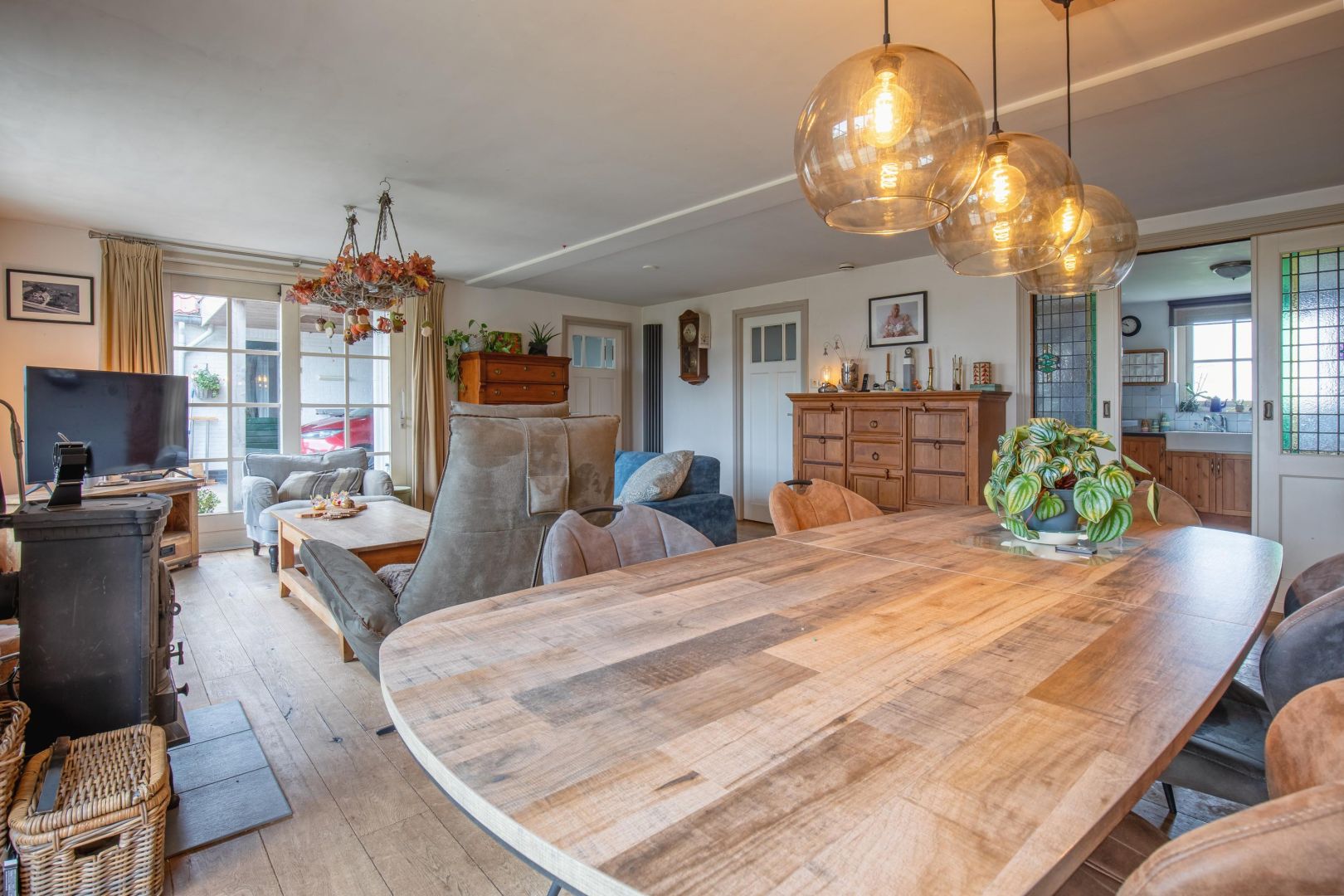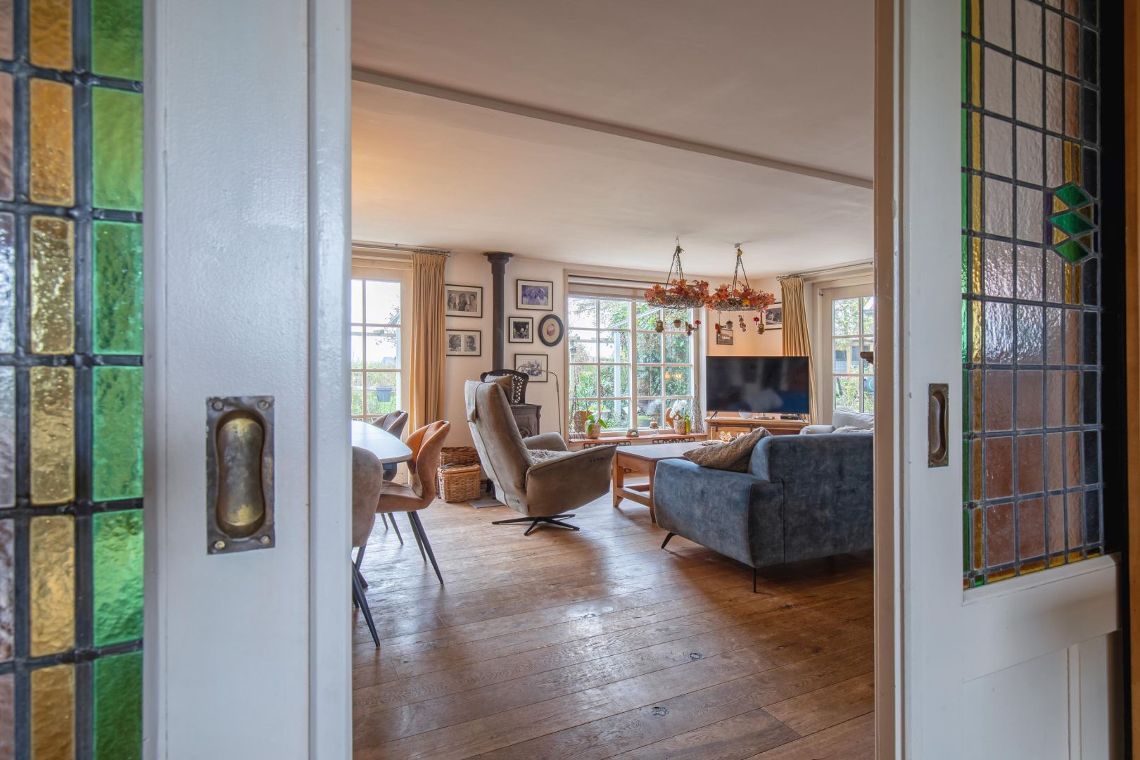 De woonkamer is gesitueerd aan de achterzijde en er is zowel een schuifpui als openslaande deuren naar de tuin. De woonkamer beschikt over sfeervolle houten vloerdelen en een gezellige haard. De begane grond is voorzien van vloerverwarming (behoudens het kantoor en de bijkeuken).
