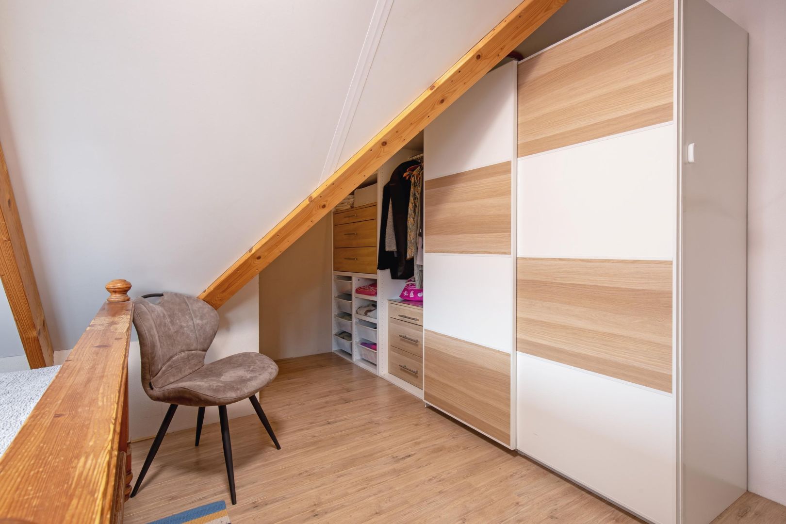 De bovenverdieping telt vier slaapkamers en een badkamer. De slaapkamers zijn van aangename grootte en twee slaapkamers hebben een dakkapel met prachtig zicht richting de Hoge Berg. De badkamer is voorzien van een douche, wastafelmeubel en vrijdragend toilet. Een vlizotrap geeft toegang tot de bergzolder.