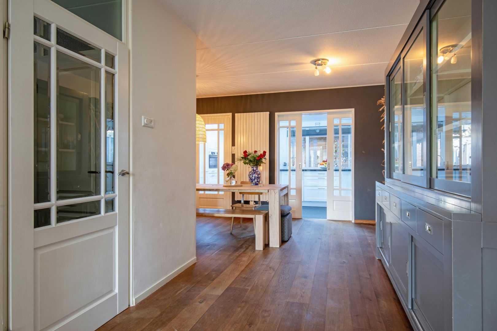 Indeling: entree in hal met toegang tot de woonkamer/eethoek, toiletruimte en trap naar de bovenverdieping. De woonkamer is aan de voorzijde v.v. een erker en heeft dankzij de grote ramen veel lichtinval. De ruime en gezellige eethoek biedt voldoende plek voor een grote eettafel.