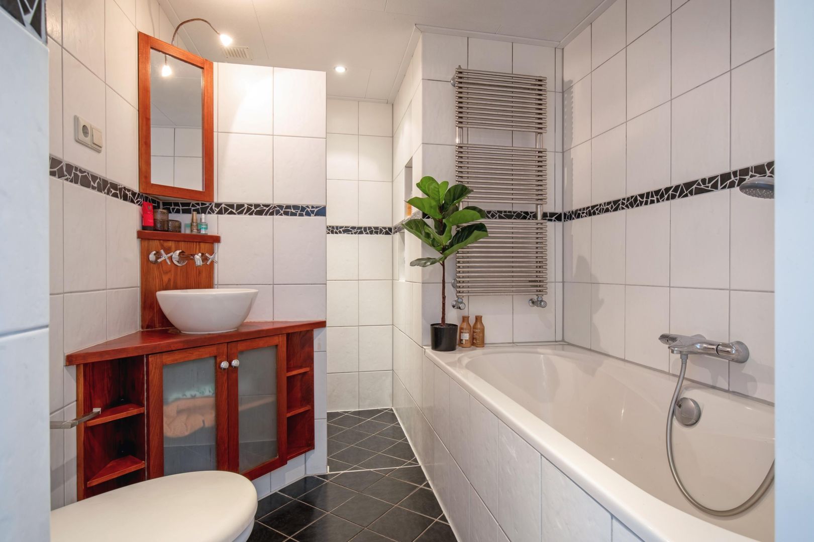 Op de bovenverdieping zijn maar liefst drie slaapkamers, een badkamer en inbouwkast op de overloop. Twee grote slaapkamers zijn te vinden aan zowel de voorzijde als de achterzijde van de woning. De kleinere slaapkamer is gesitueerd aan de voorzijde. De badkamer is uitgevoerd met ligbad, douche, vrijdragend toilet en wastafel.