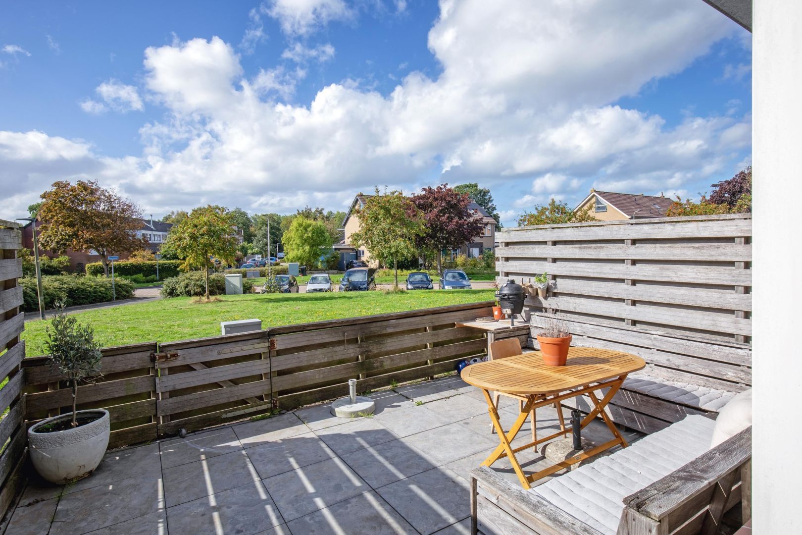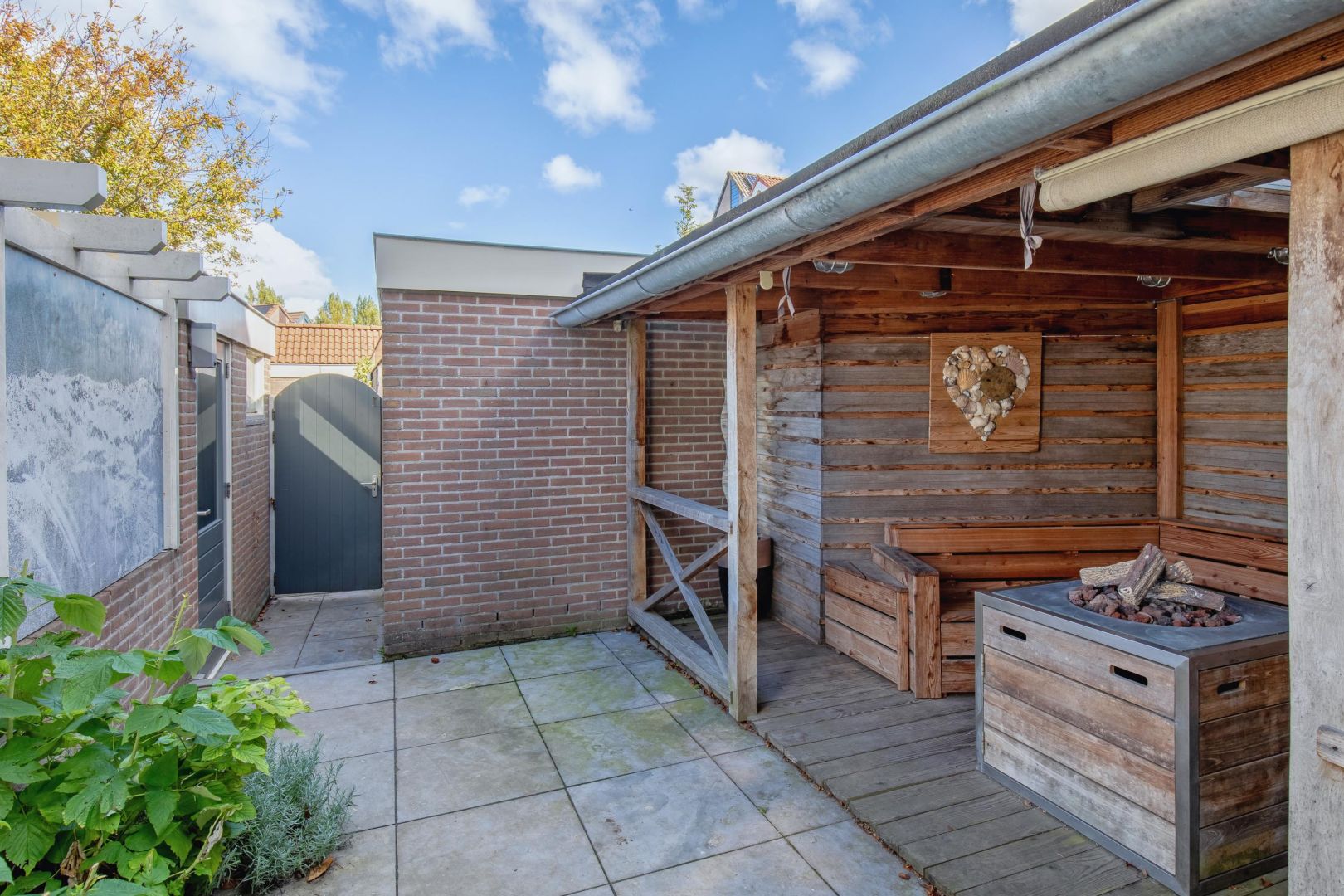 In de tuin aan de achterzijde bevindt zich een gezellige overkapping met een buitenhaard en is voorzien van een berging (ca. 7 m2) met elektra. Het perceel grenst aan een openbare parkeerplaats en een speeltuin.