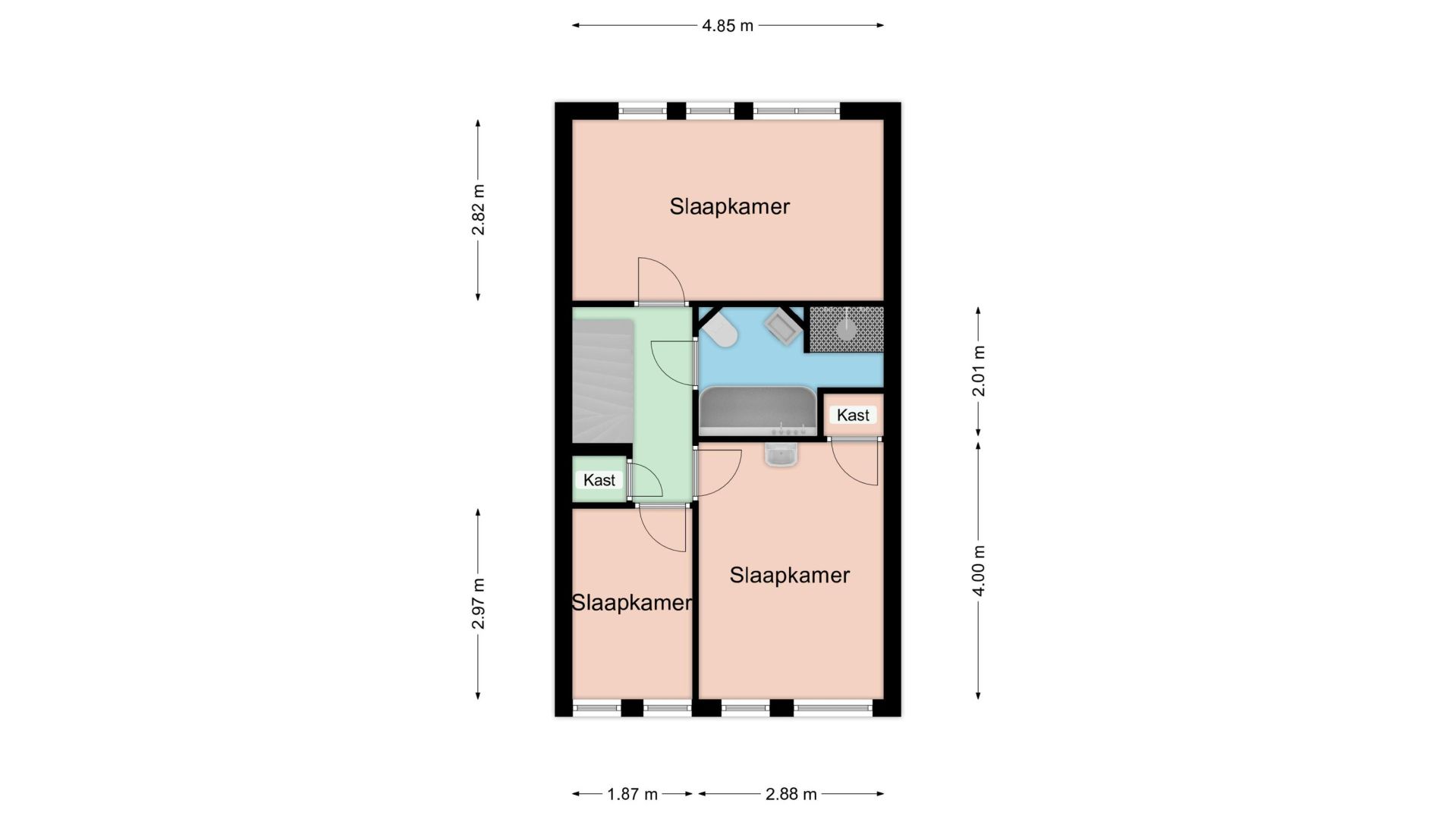 De tweede verdieping is bereikbaar middels een vaste trap. Op de overloop vindt u hier de aansluiting voor wasmachine en droger en is tevens de opstelling C.V.. Verder is de verdieping v.v. een 4e en 5e slaapkamer.