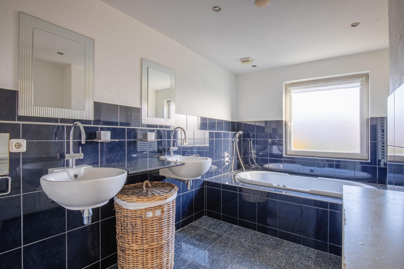 De badkamer aan de voorzijde beschikt over een ligbad en twee wastafels en de tweede badkamer is voorzien van een douche, vrijdragend toilet en urinoir.