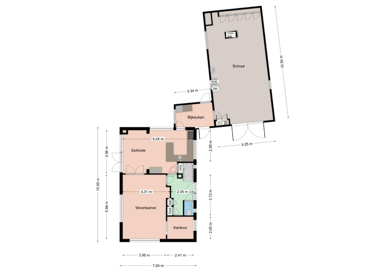 De schuur heeft op de begane grond een Gebruiksoppervlakte wonen van maar liefst circa 54 m2 en hier is de opstelling van de cv-ketel, evenals aansluitingen voor een wasmachine/droger. De bovenverdieping is te bereiken met een steektrap. De aangebouwde schuur biedt volop mogelijkheden voor hobby- of werkruimte.