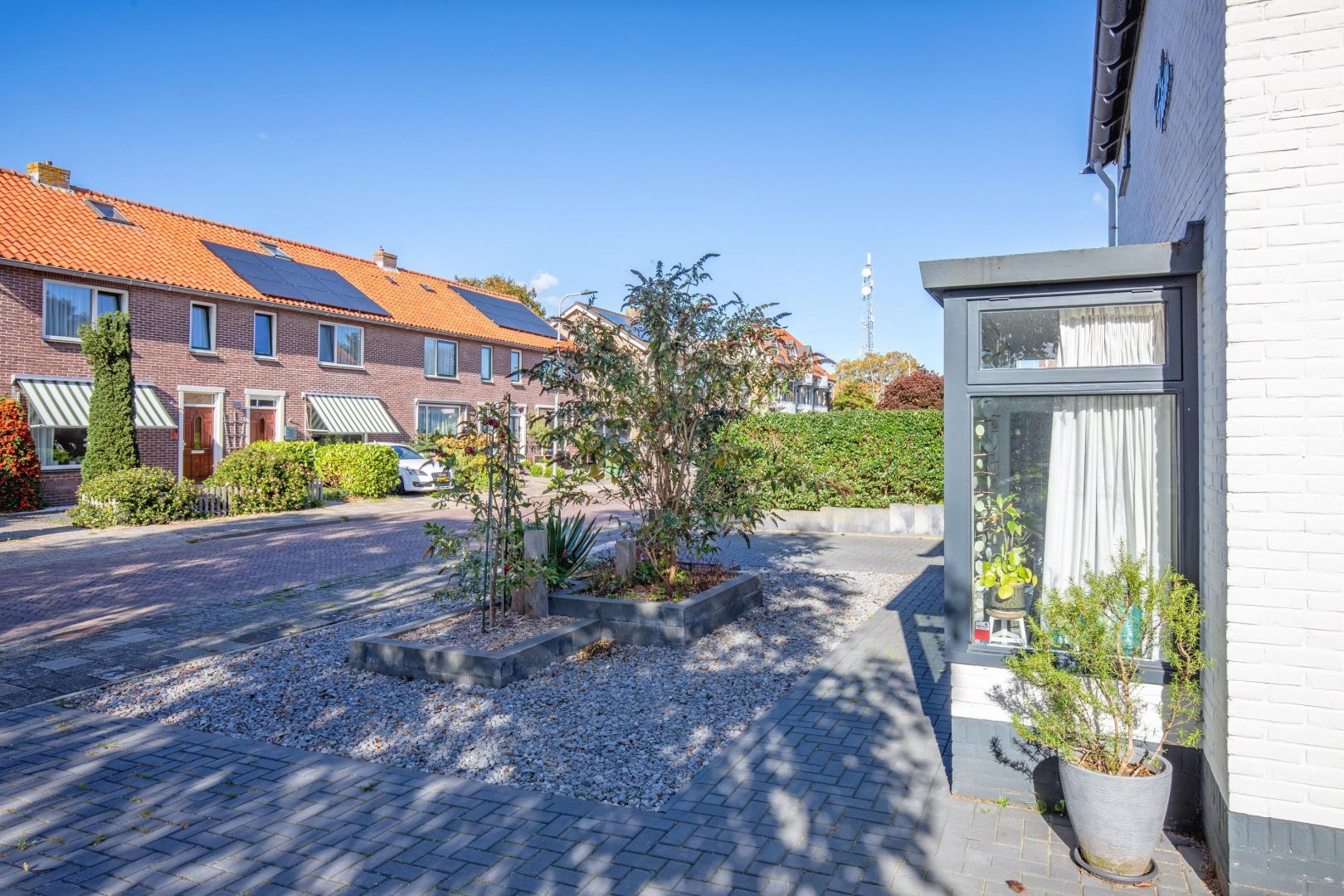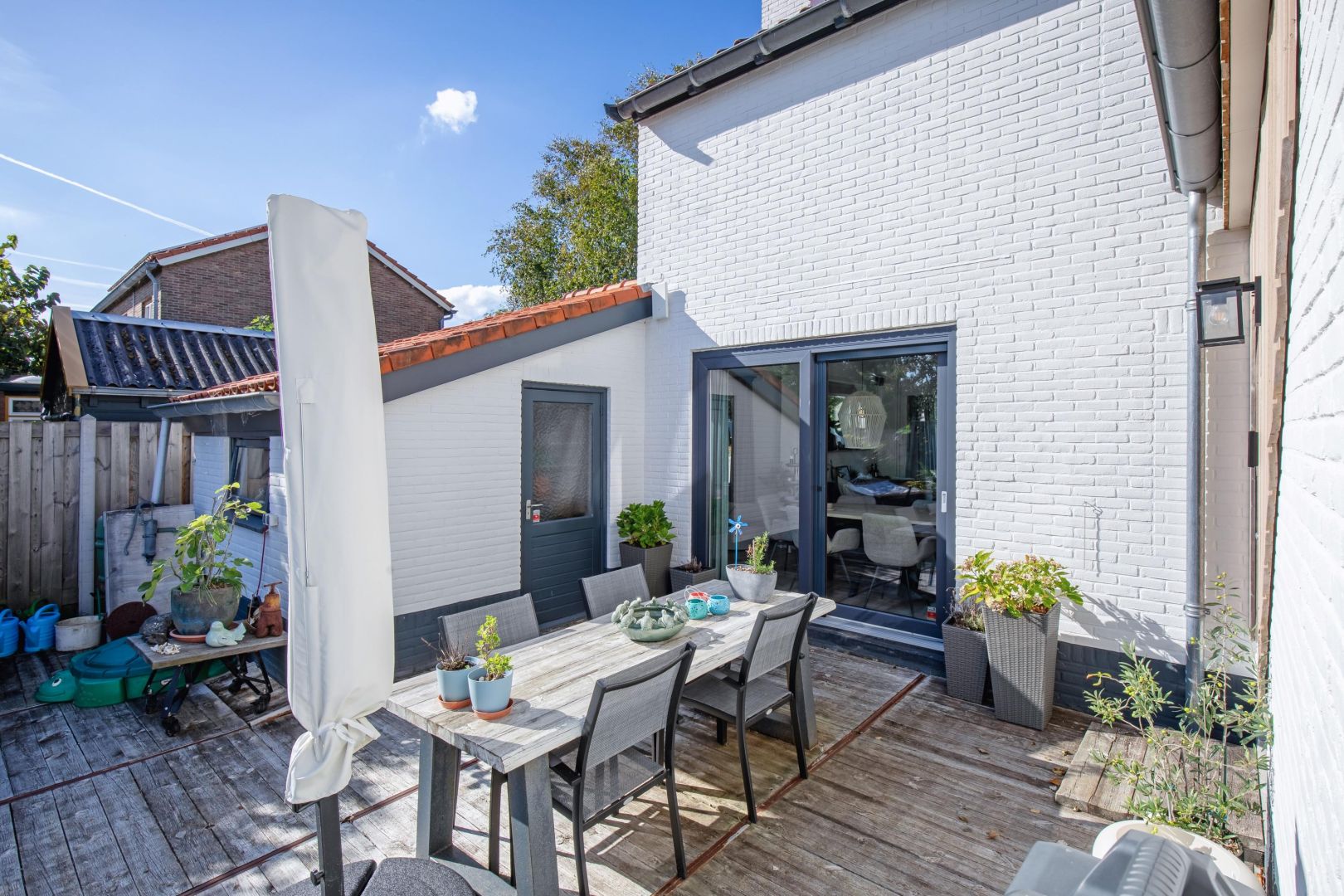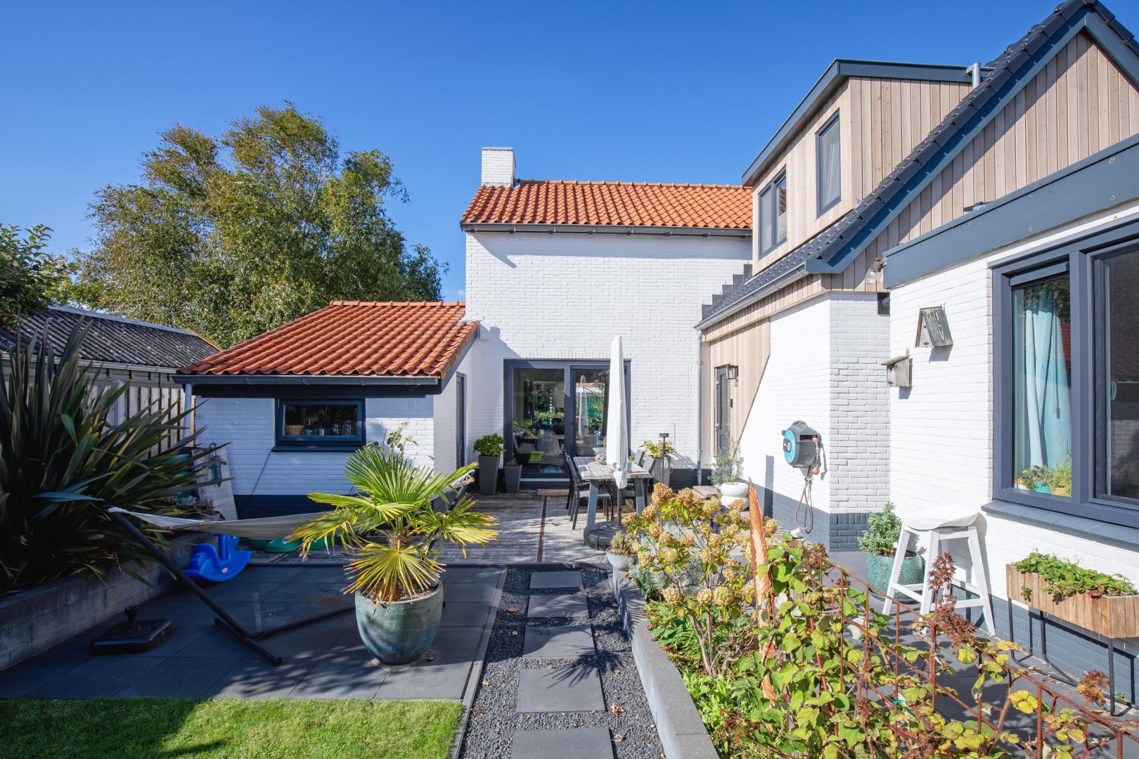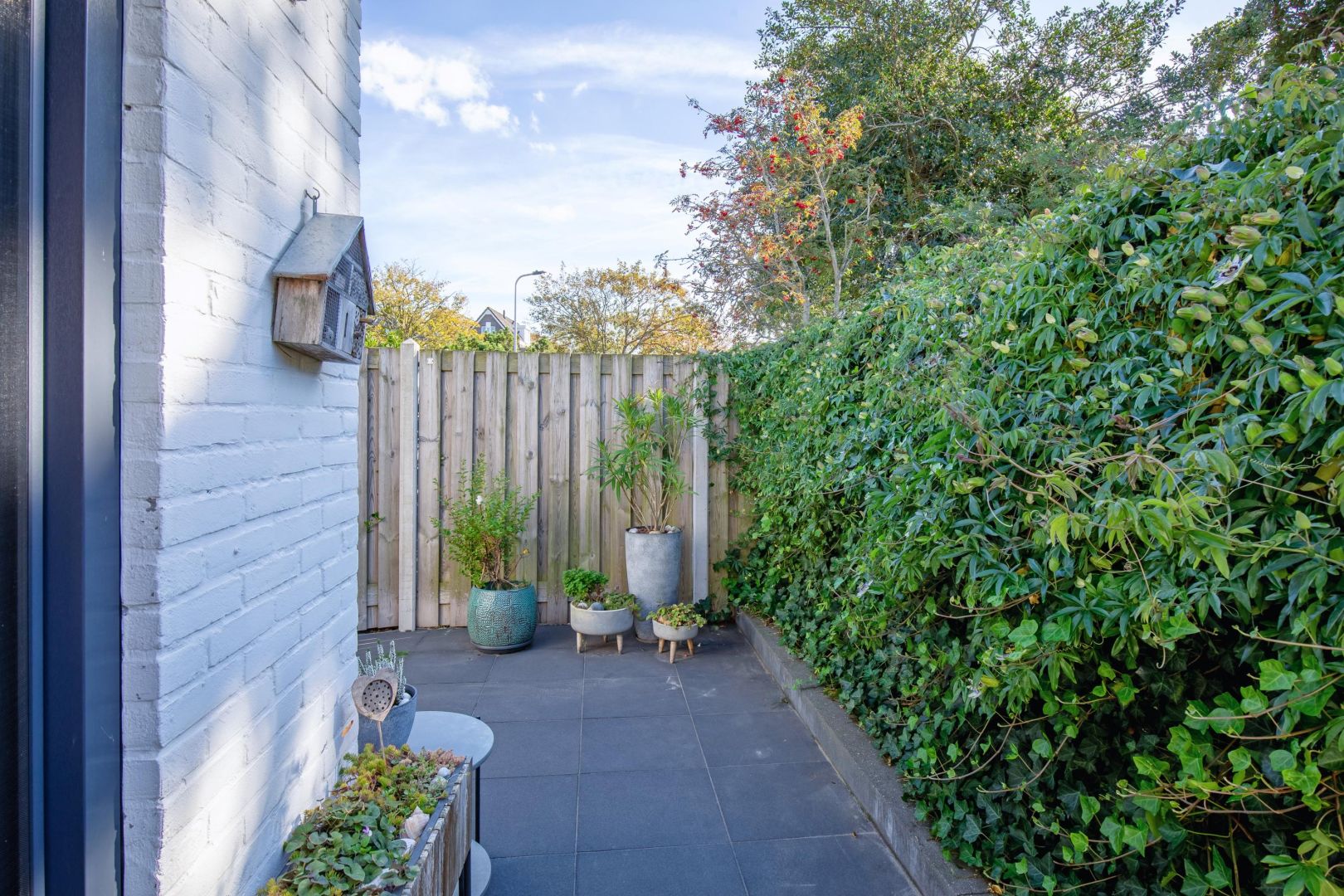 De tuin is gezellig ingericht met twee terrassen en een grasveld. Er is een achterom verbinding naar de parkeerplaats van supermarkt de Jumbo. Aan de voorzijde van de woning is parkeergelegenheid voor drie auto’s op eigen terrein.