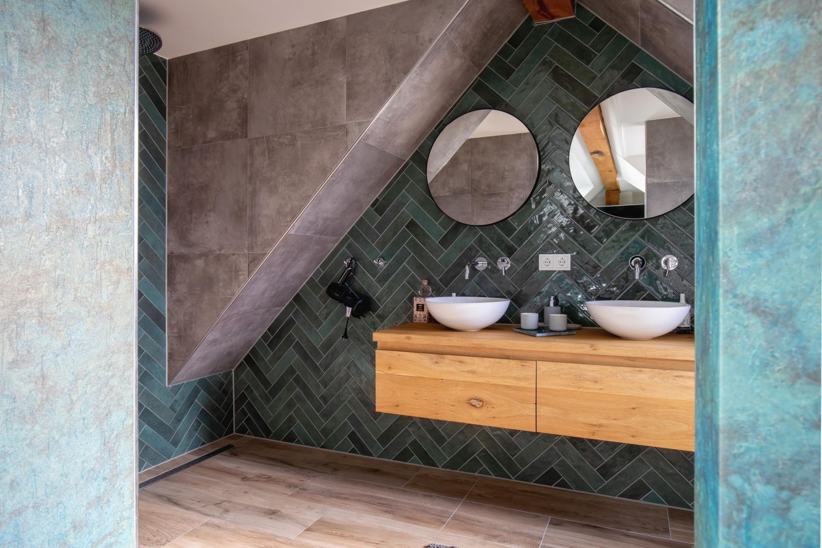 Op de bovenverdieping zijn drie slaapkamers, waarvan één zeer ruime, modern afgewerkte slaapkamer (2021) met een dakvenster waardoor u ’s avonds vanuit bed naar de sterrenhemel kunt kijken. De slaapkamer heeft een badkamer-en-suite met een ligbad, dubbele douche, dubbele wastafel en vrijdragend toilet.