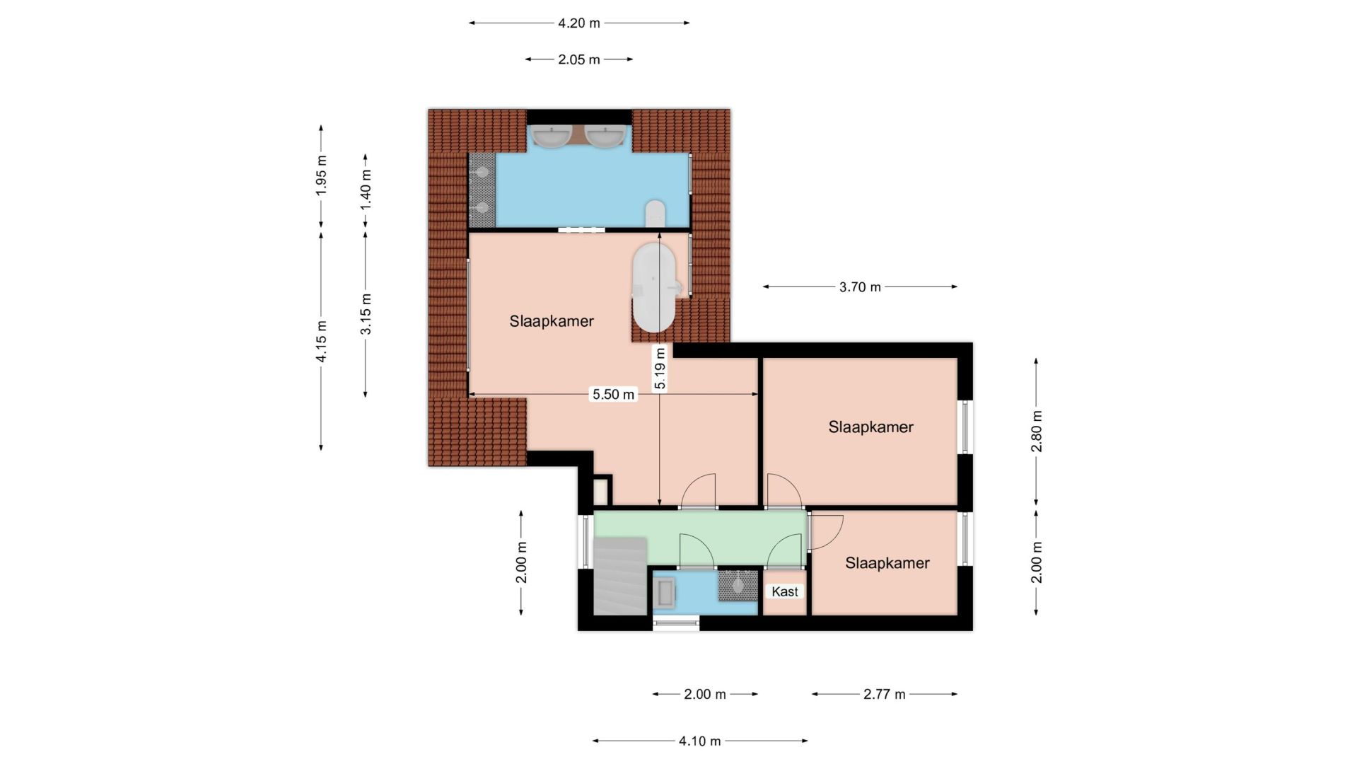 In de tweede slaapkamer is een luik naar de bergzolder. De derde slaapkamer is kleiner van opzet en geschikt voor één persoon. De tweede badkamer heeft een douche en wastafelmeubel.