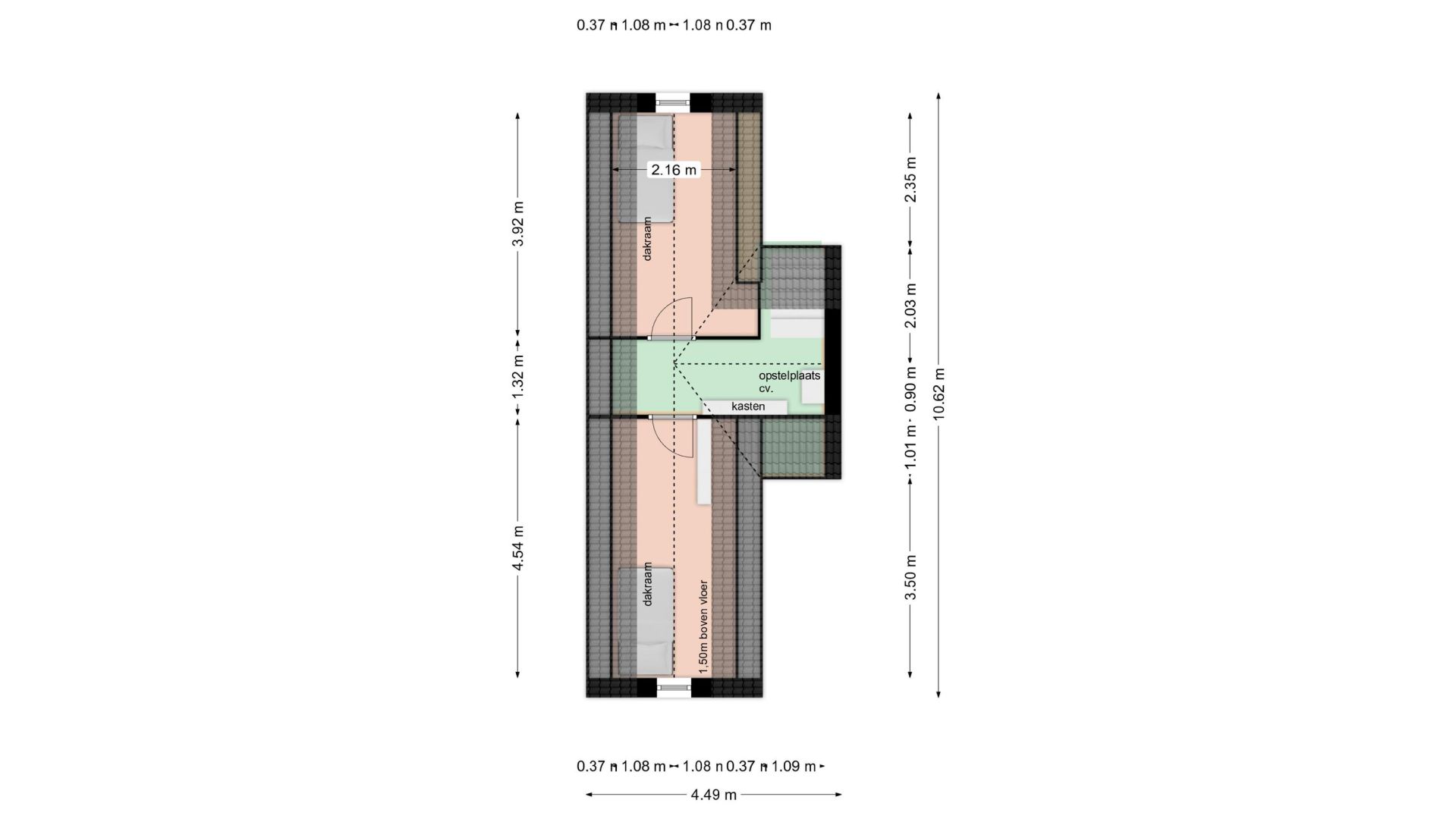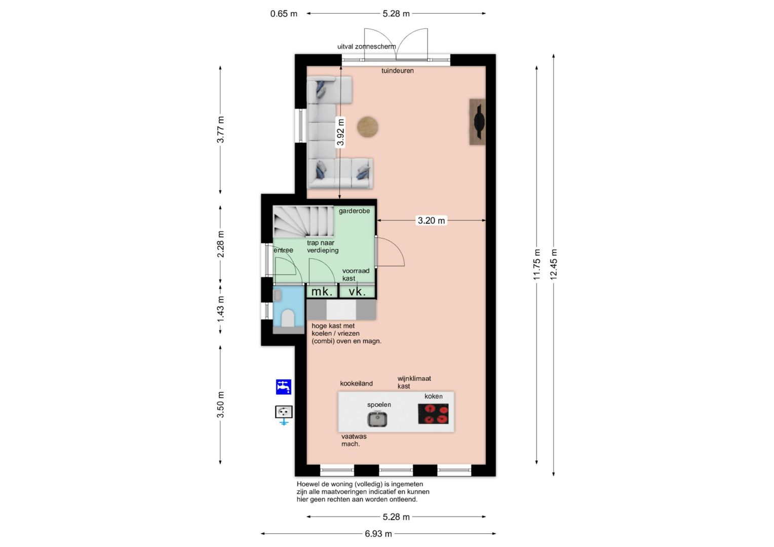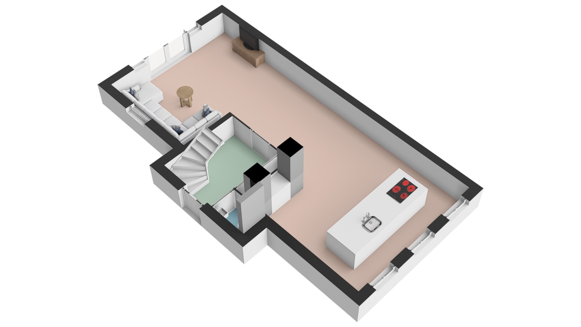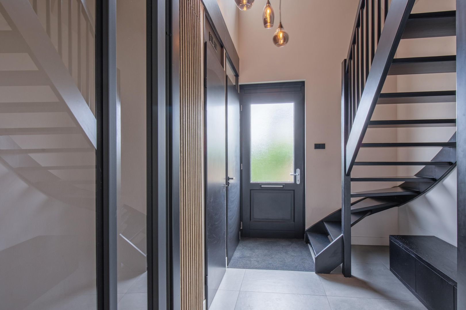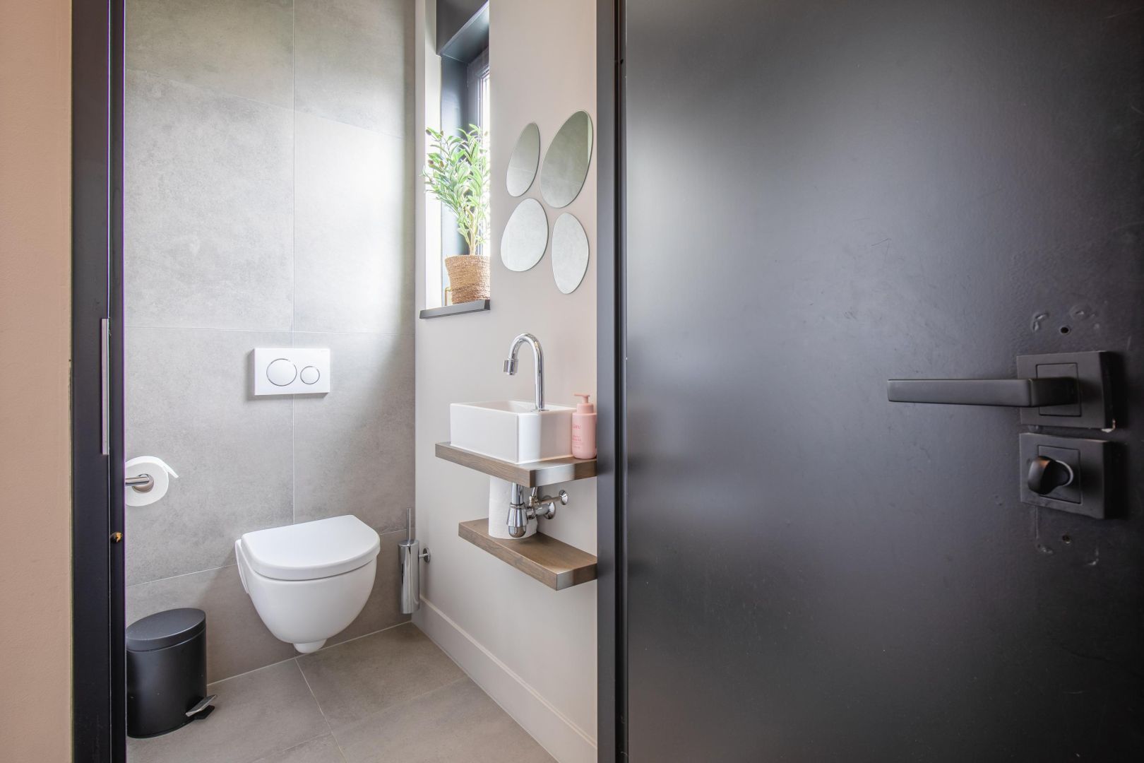 Indeling: entree in ruime hal met toegang tot de woonkamer/keuken, toiletruimte (met vrijdragend toilet en fonteintje), trap naar de bovenverdieping en de meterkast.