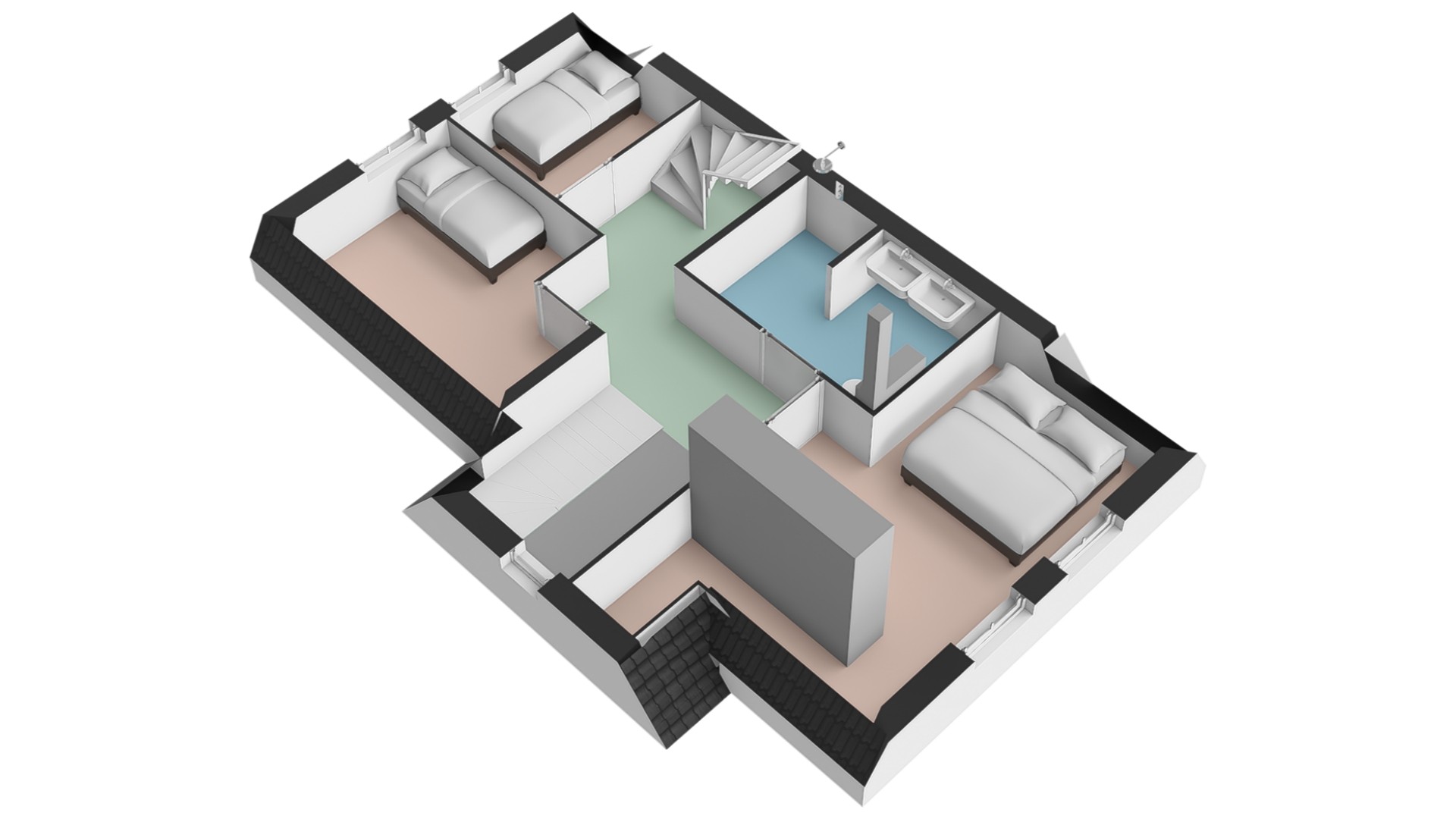 Een vaste trap geeft toegang tot de tweede verdieping met de vierde en vijfde slaapkamer.