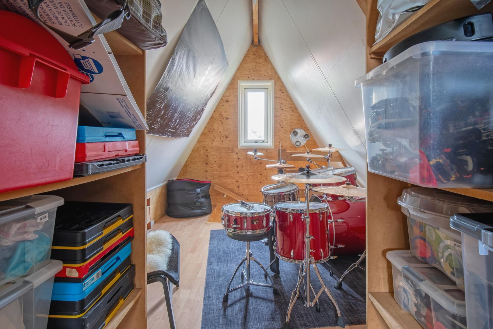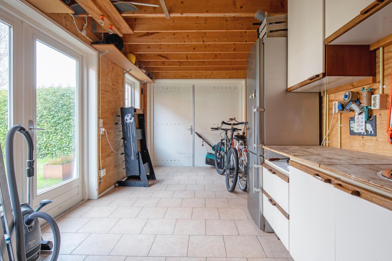 Aan de achterzijde is een fijne tuin met grasveld en terras. De tuin biedt voldoende ruimte voor spelende kinderen, tuinliefhebbers of het realiseren van een gezellige lounge. Op het perceel is een garage/berging aanwezig (met de aansluitingen voor een wasmachine/droger) en een bergzolder. Er is een oprit met elektrische laadpaal en parkeergelegenheid op eigen grond.