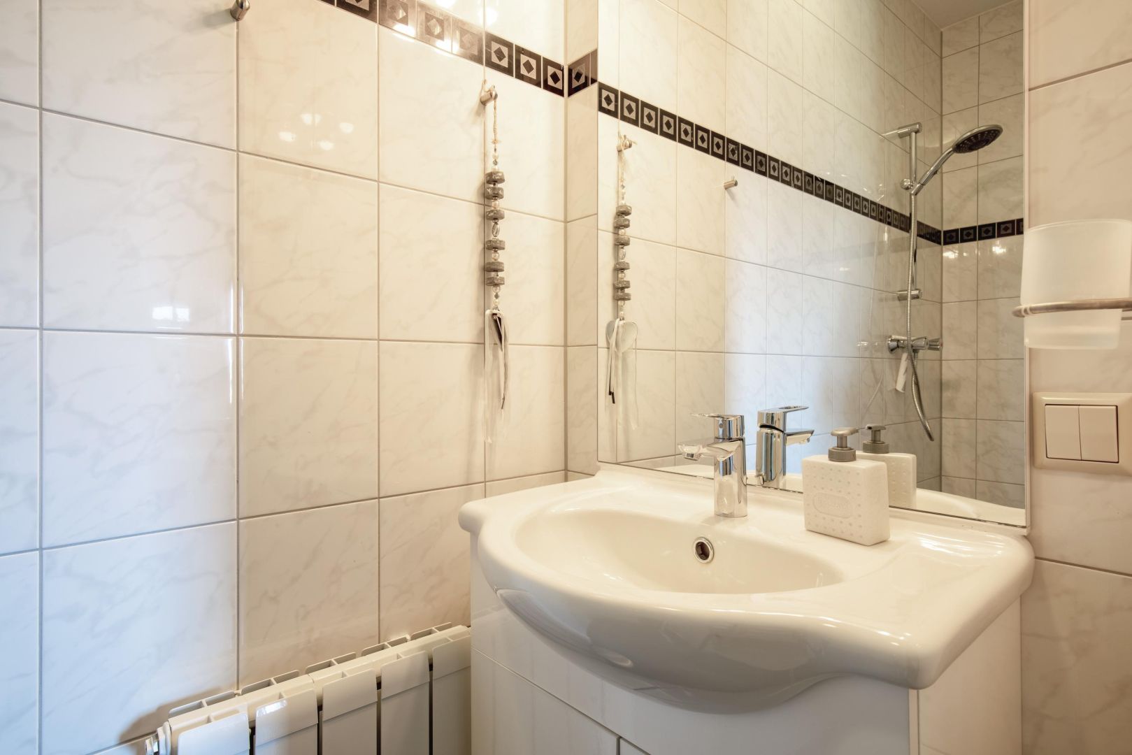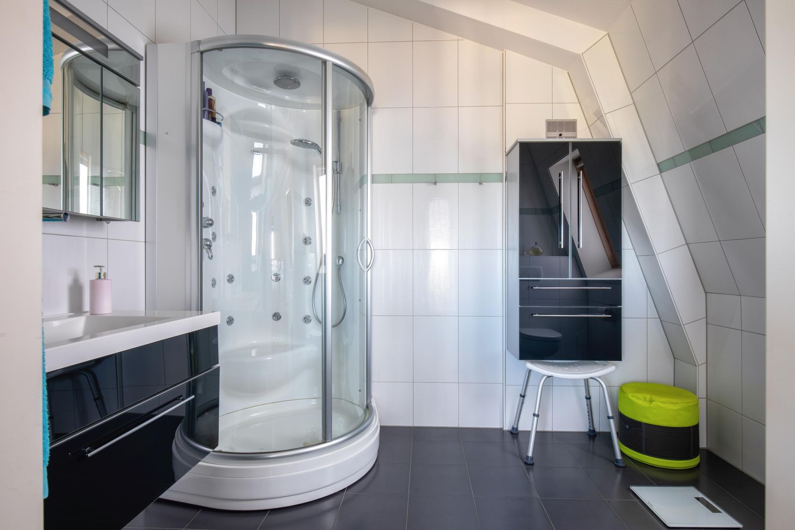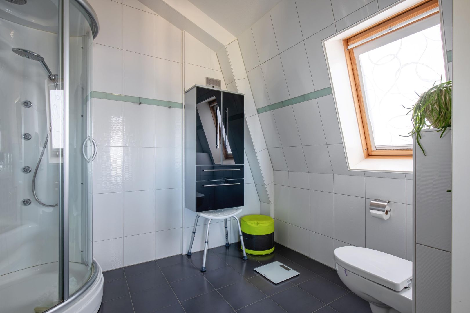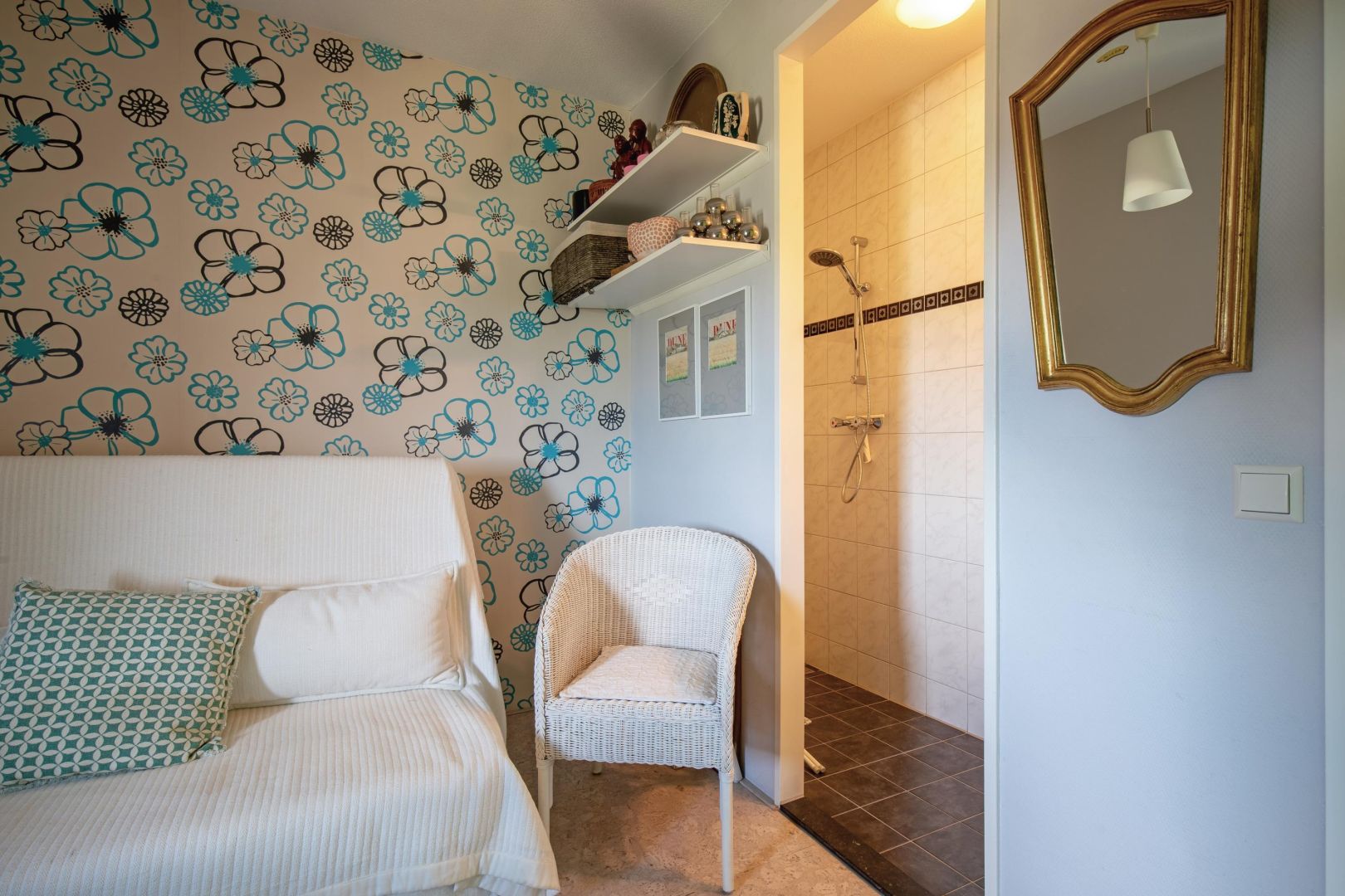 In de tweede slaapkamer is ook een badkamer aanwezig. Deze badkamer heeft een douche en een wastafelmeubel.