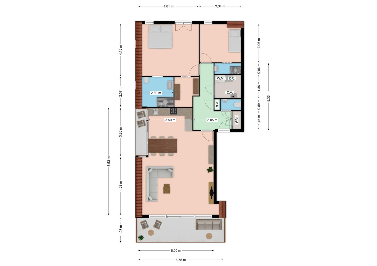 | Gebruiksopp. wonen | 107m2 |