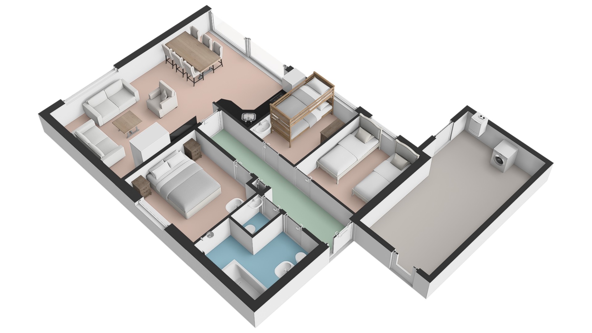 De woning telt drie slaapkamers. In de ruime 2-persoons slaapkamer is een wastafel aanwezig. De tweede slaapkamer heeft twee eenpersoonsbedden en in de derde slaapkamer is een stapelbed en ook in deze slaapkamer is een wastafel.