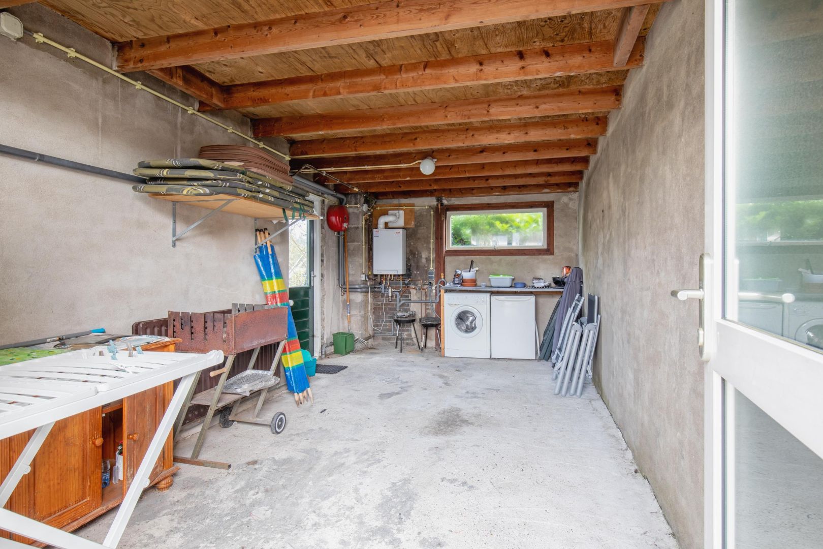 Naast de woning is een garage (buitenom bereikbaar). Hier zijn aansluitingen voor een wasmachine en hier is ook de opstelling van de cv-ketel.