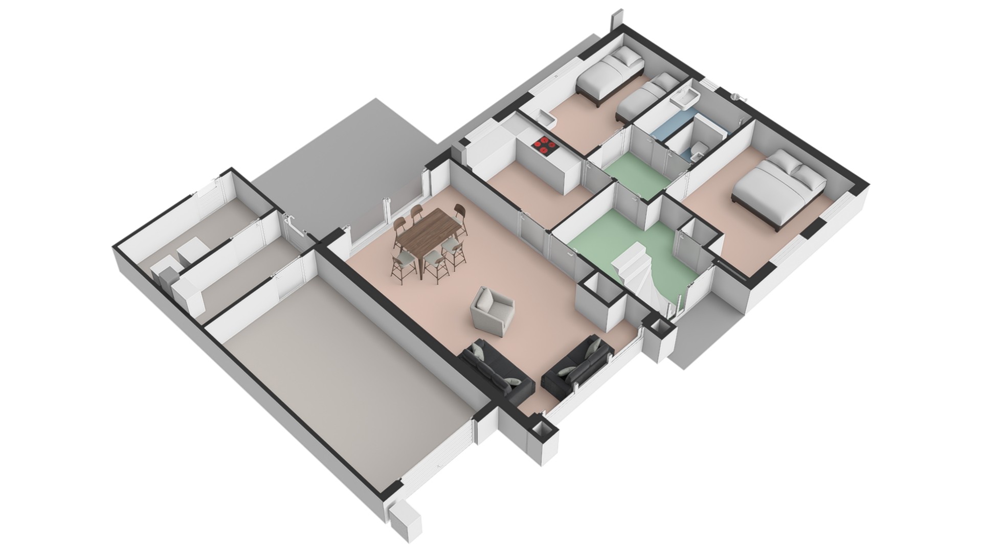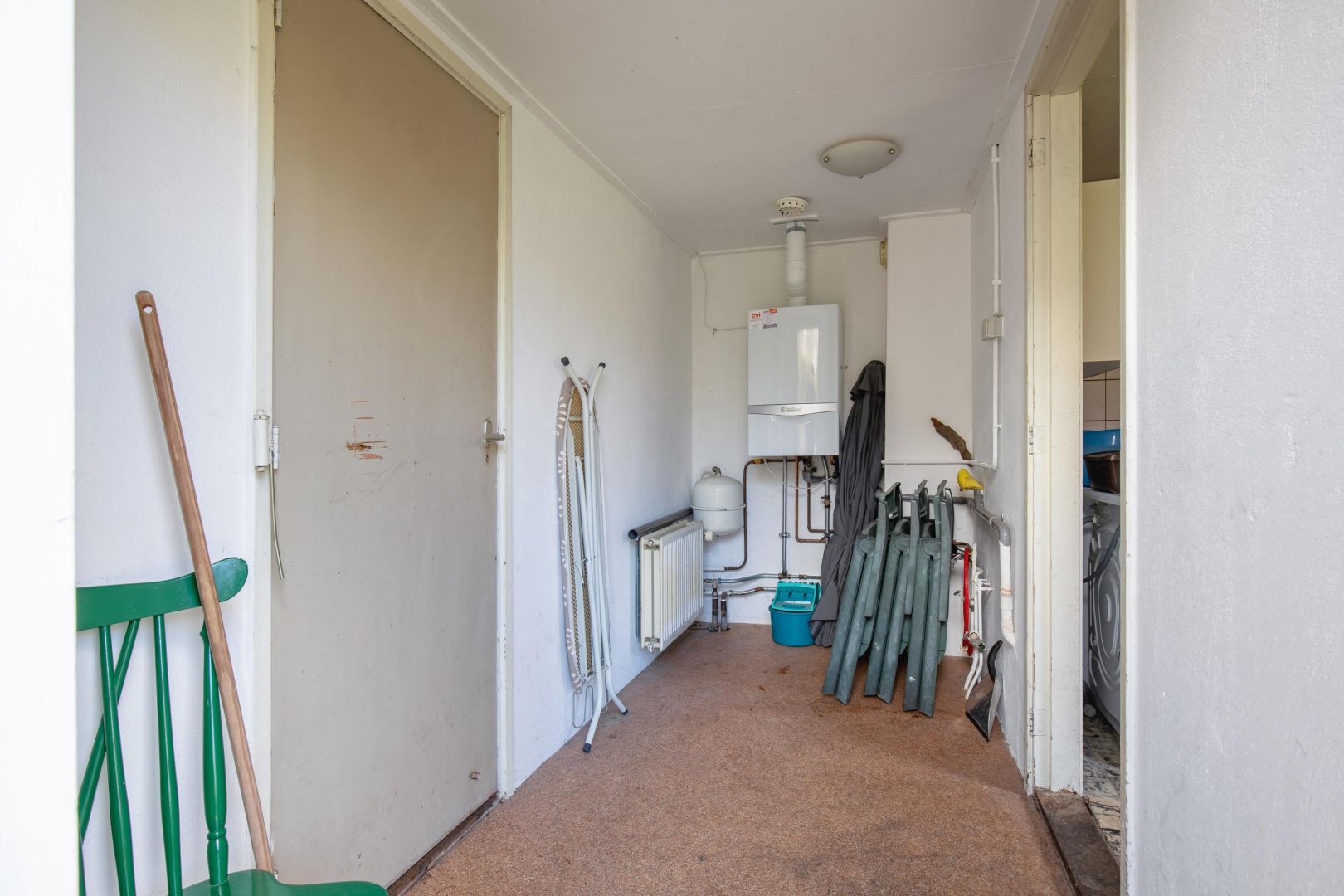 Naast de woning bevindt zich een garage (van buitenaf bereikbaar) en een inpandige berging. Hier vindt u ook de aansluitingen voor de wasmachine en de cv-installatie.