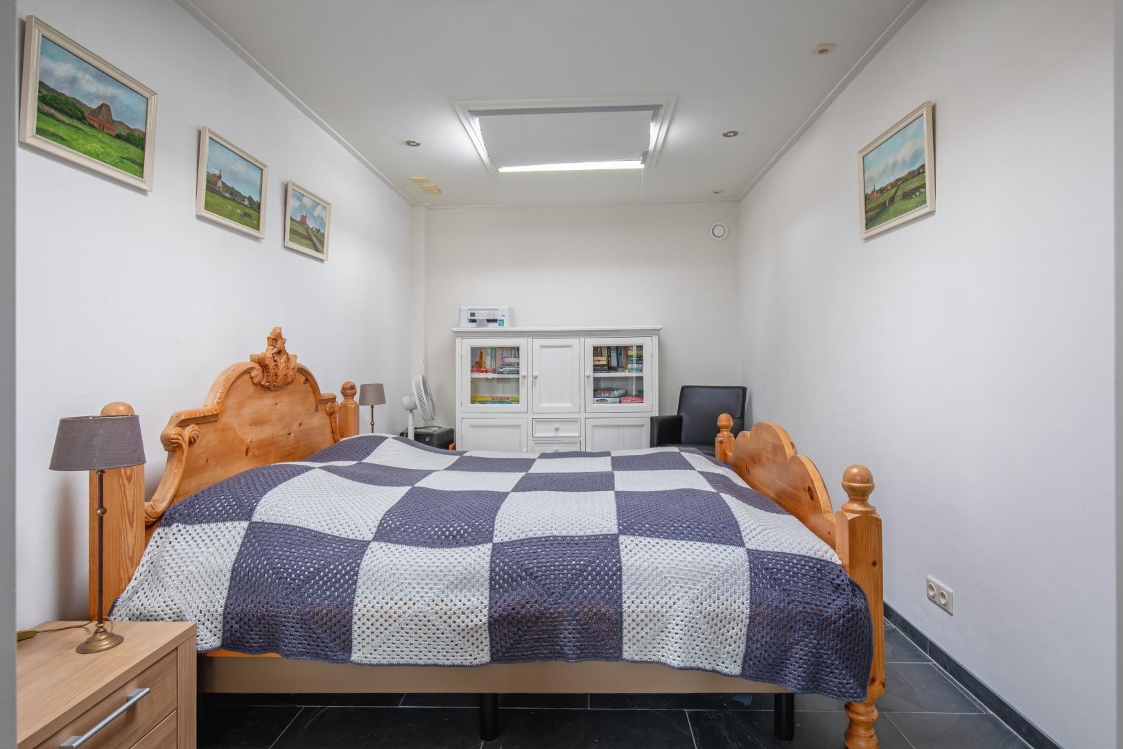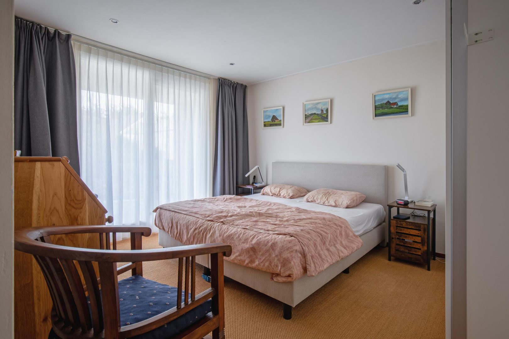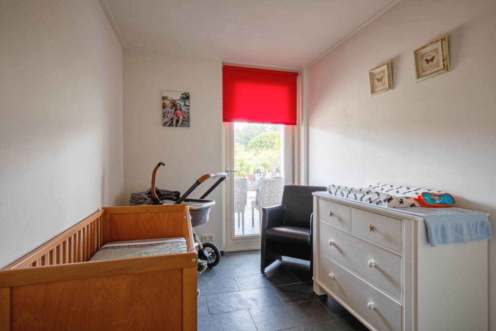 De hoofdslaapkamer is uitgerust met een eigen luxe badkamer met dubbele wastafel, douche, toilet en een stijlvolle wand van glazen bouwstenen. De derde slaapkamer is eveneens licht en comfortabel ingericht. In de vierde, kleinere slaapkamer is een deur naar de tuin.