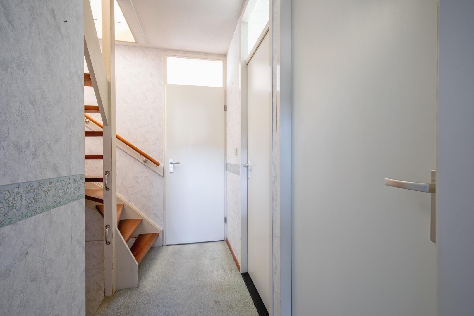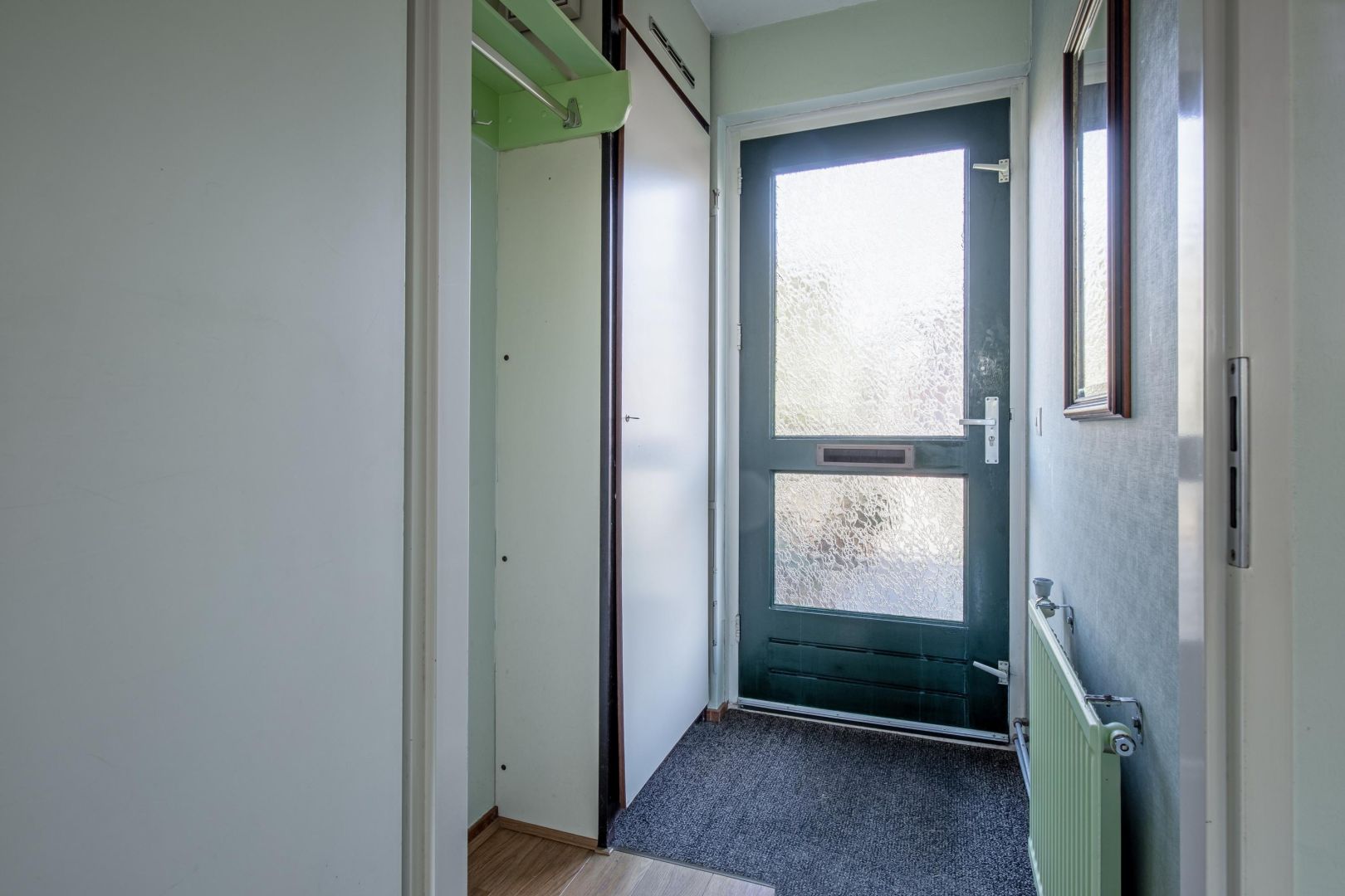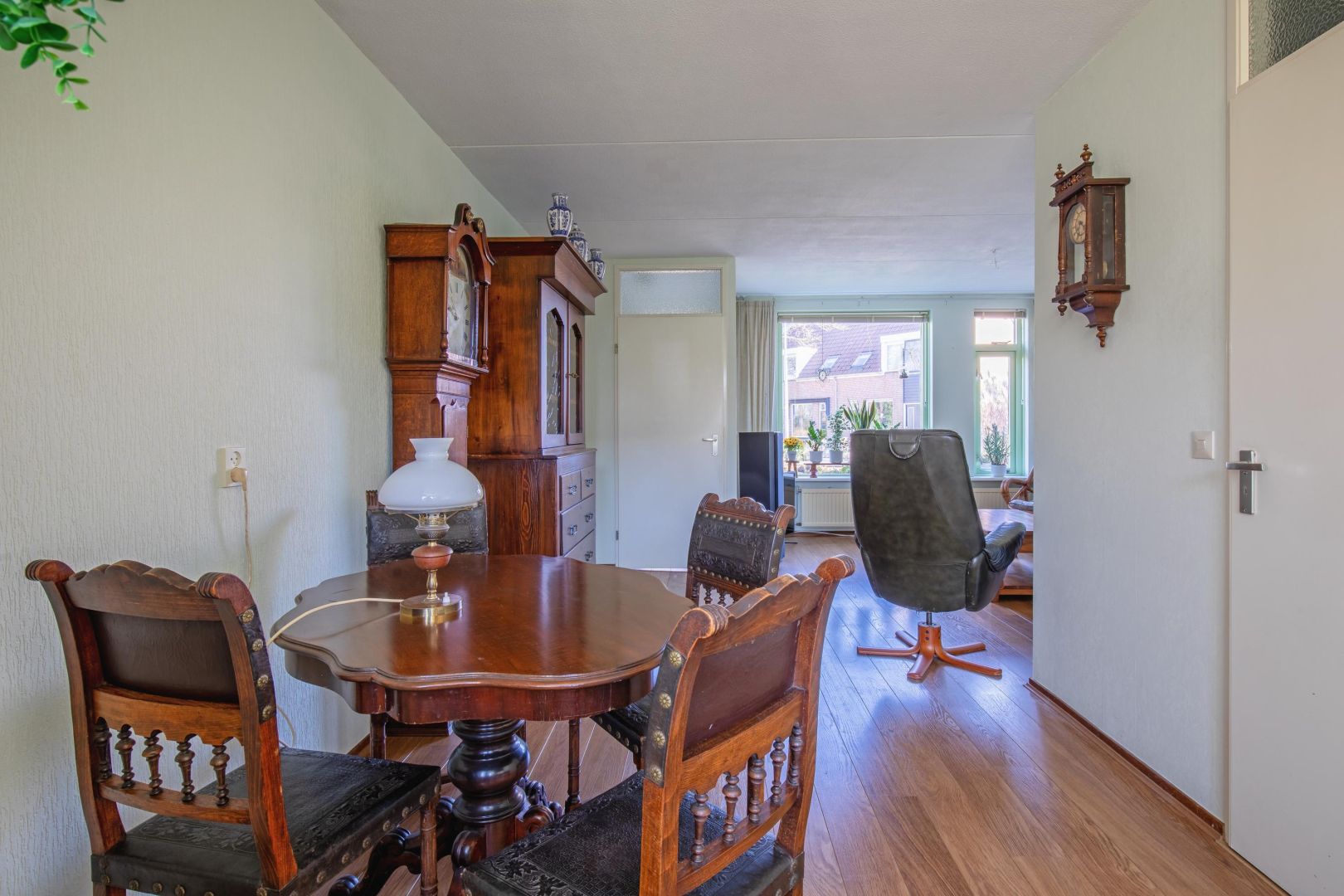 Indeling: entree in hal met toegang tot de woonkamer/keuken. De aan de voorzijde gesitueerde woonkamer heeft twee raampartijen met zicht de straat. Er is bergruimte aanwezig in de trapkast.