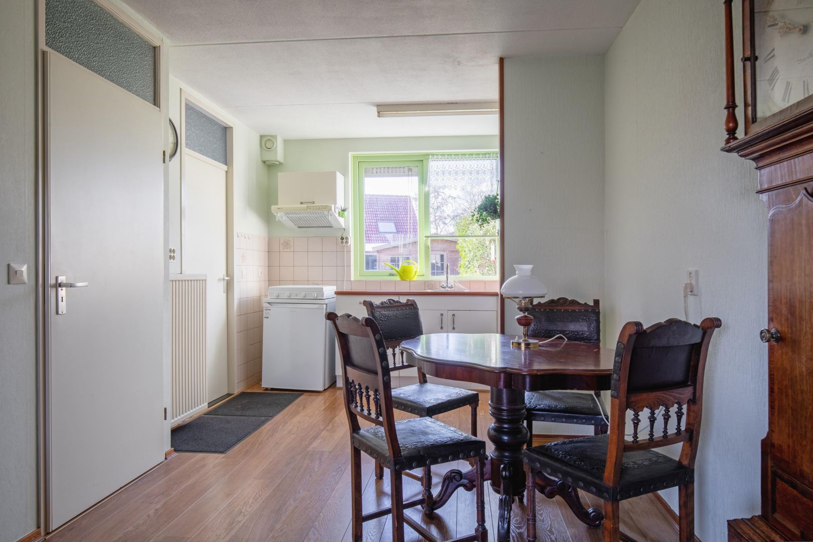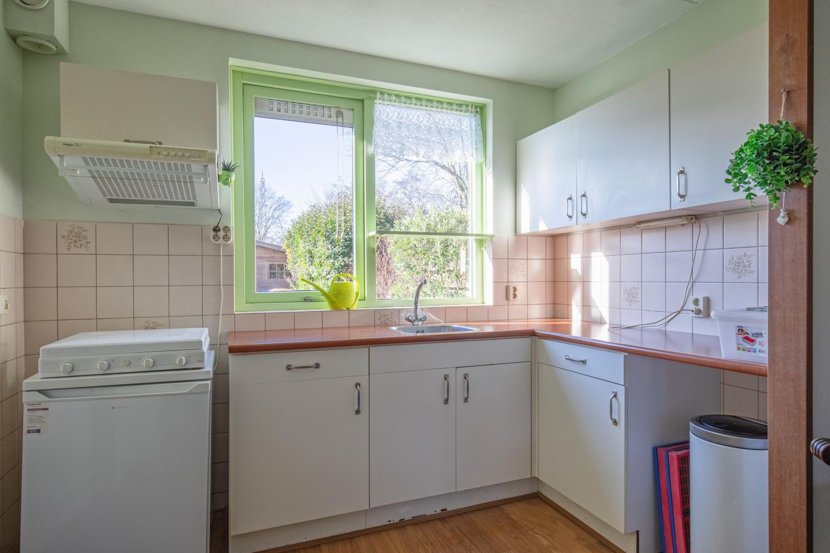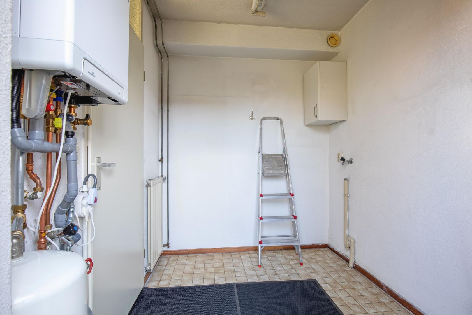 In de bijkeuken is de opstelling van de cv-ketel (bouwjaar 2024) en er zijn aansluitingen voor een wasmachine. Ook is er een deur naar de tuin.