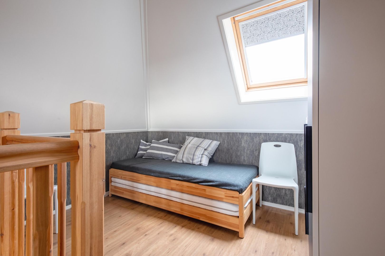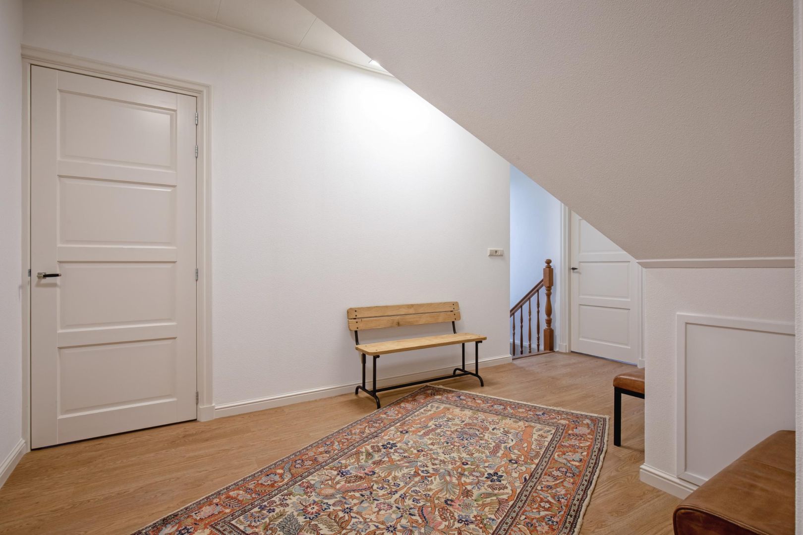 Via een vaste trap bereik je de 2e verdieping alwaar nog eens een ruime overloop, 2 slaapkamers en een badkamer aanwezig is.