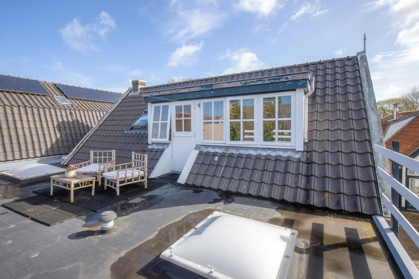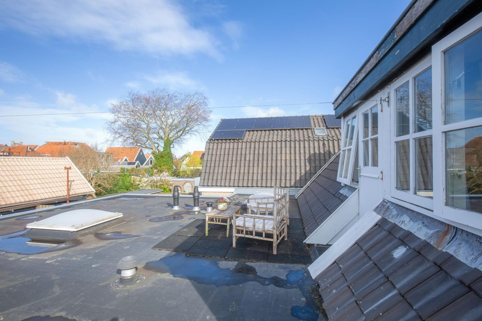 Via de open trap in de woonkamer is de verdieping bereikbaar. De overloop is v.v. een dakkapel en geeft toegang tot het dakterras met zicht op de Maartenskerk. Op de verdieping zijn 3 slaapkamers en de tweede badkamer v.v. ligbad, inloopdouche, wastafel en toilet.