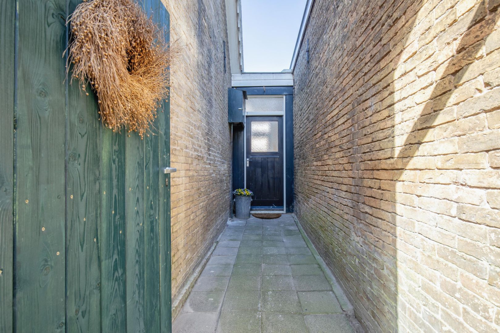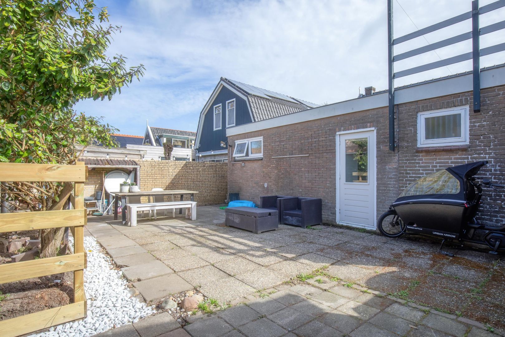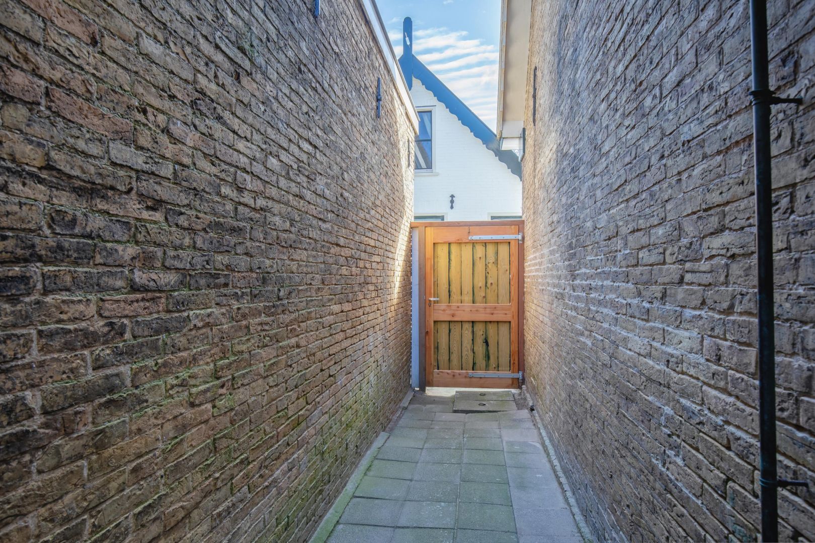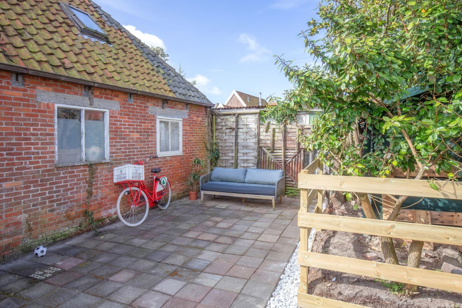 De besloten achtertuin is gezien de ligging in het centrum ruim te noemen en heeft zowel middag- als avondzon. Via het naastgelegen perceel is de tuin achterom te bereiken.