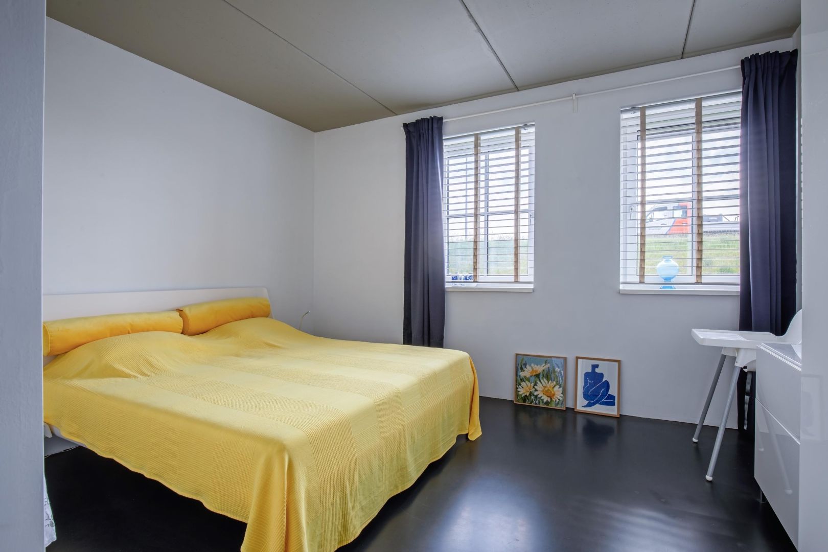 Via een prachtig ontworpen trap bereikt u de overloop op de 2e verdieping met toegang tot de woonkamer en de andere toiletruimte. De woonkamer heeft fraai lichtinval. Ook hier is een mooie gietvloer. De verwarming op de 2e verdieping geschied ook middels een doorkijk gashaard. De ronde raampjes in het schuine dakvlak lijken op patrijspoorten en geven een nautische sfeer. De luxe keuken is eveneens van Italiaans Design (Snaidero) en is van alle gemakken voorzien. Via openslaande deuren bereikt u het dakterras van ca. 12 m2, welke u een rijk uitzicht geeft over de havenmond richting de Waddenzee.