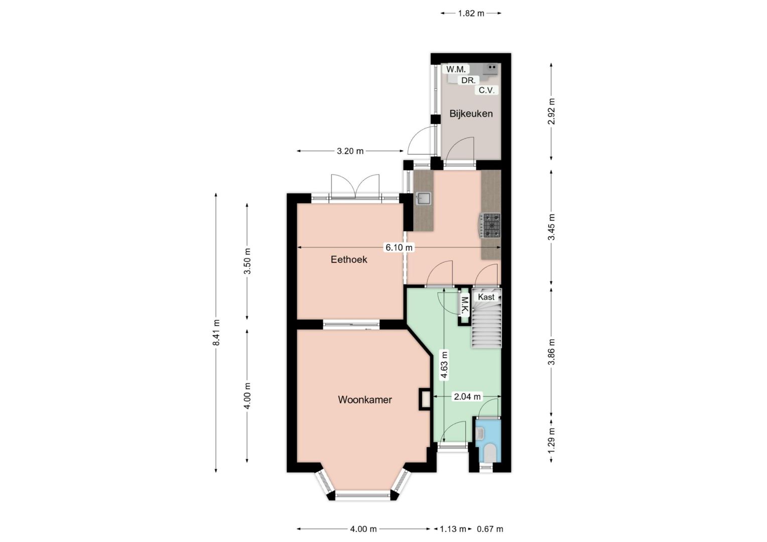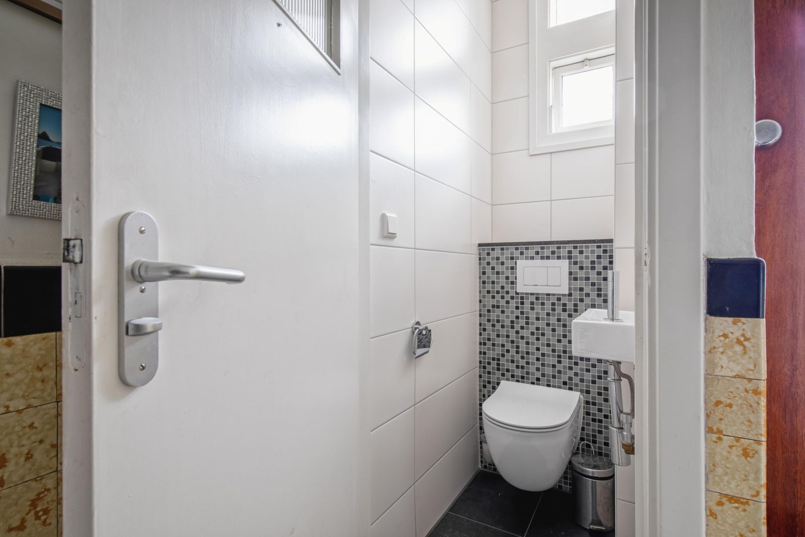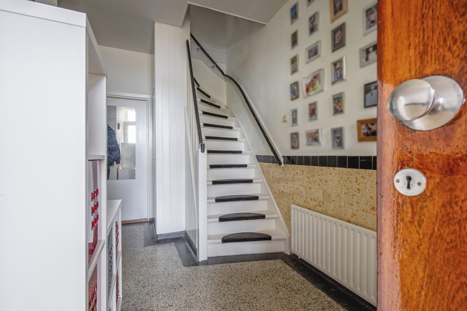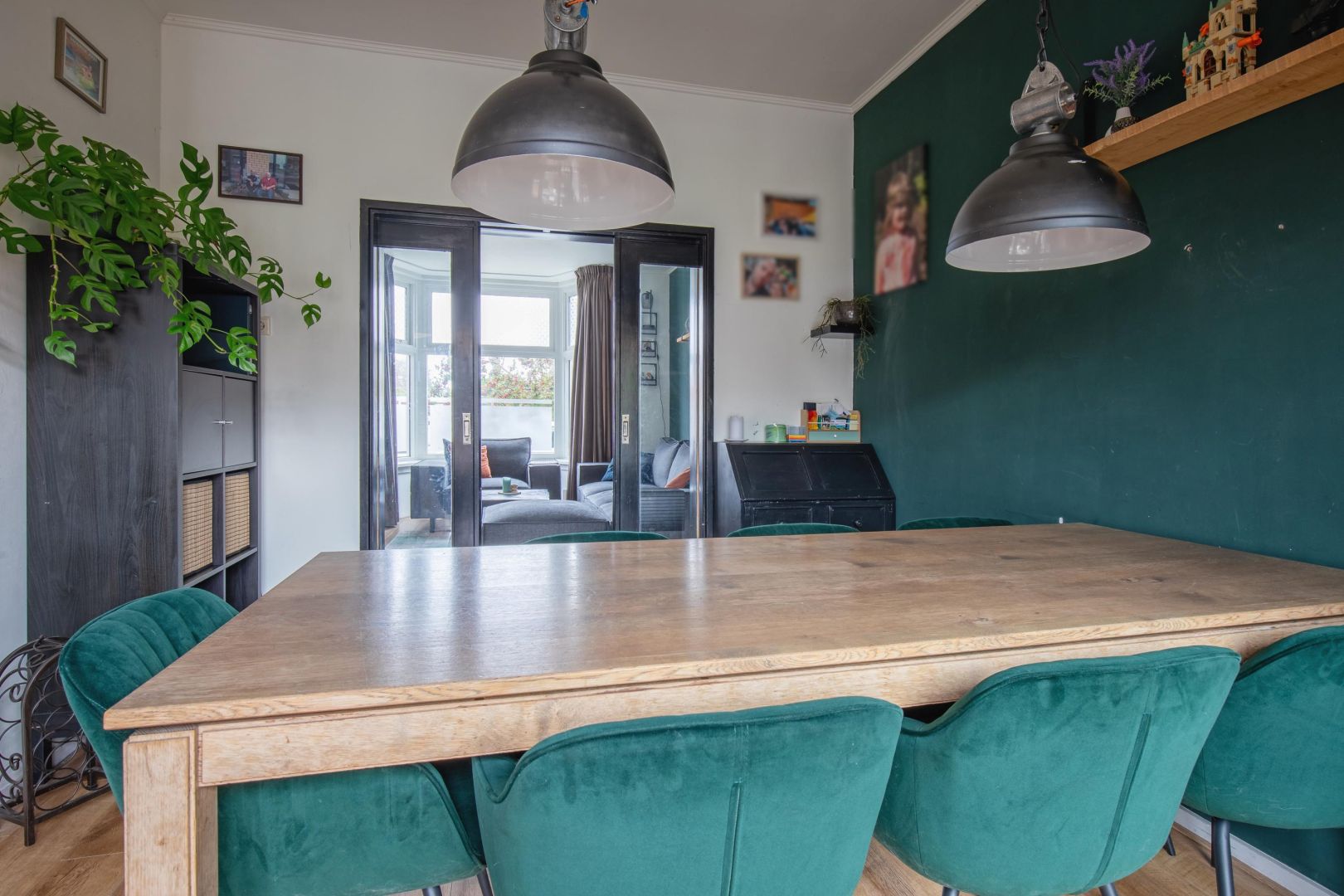 Indeling: entree in hal (voorzien van een stijlvolle granitovloer!) met toegang tot de kamer-en-suite woonkamer, keuken, toiletruimte (2020) en trap naar de bovenverdieping. De aan de voorzijde gesitueerde woonkamer heeft een erker, kenmerkend voor deze bouwperiode. Middels schuifdeuren is deze kamer-en-suite af te sluiten van de eethoek. De eethoek is gezellig ingericht en er zijn openslaande deuren naar de tuin.