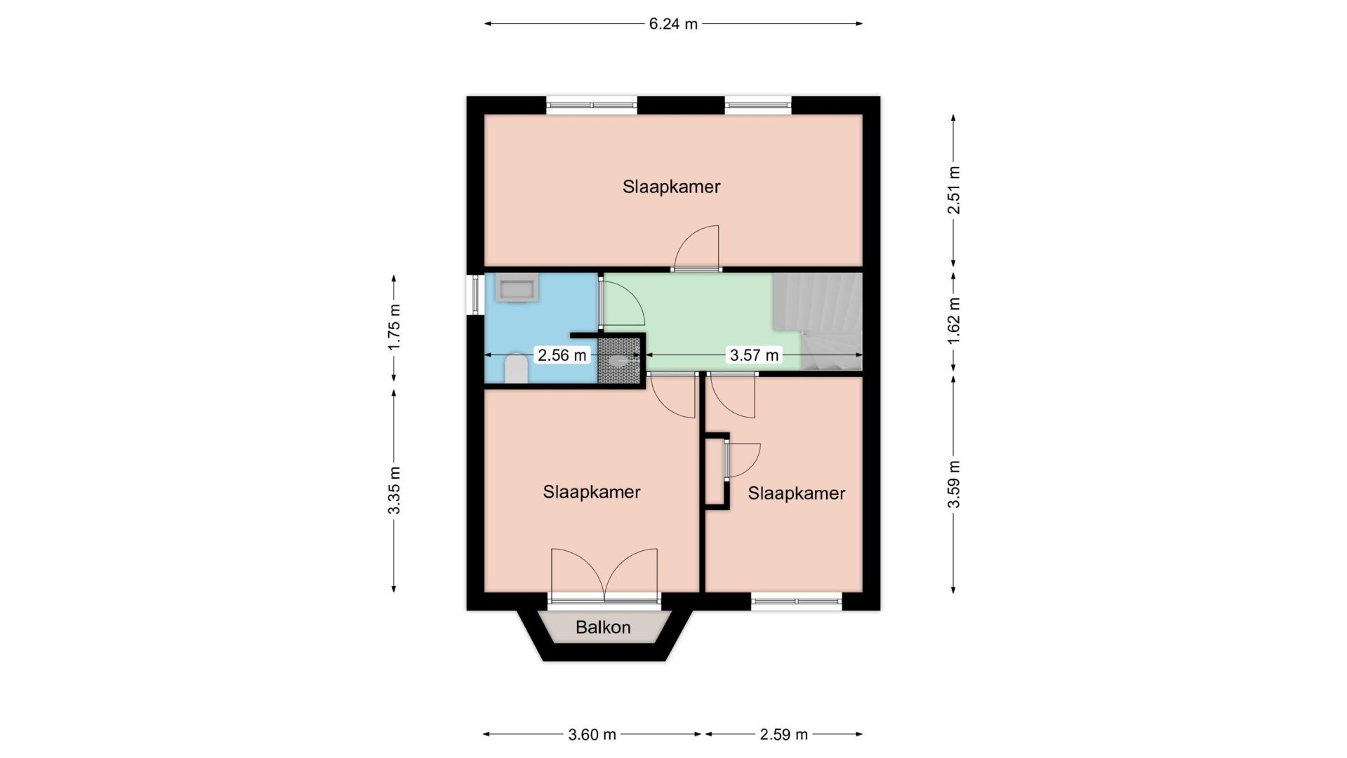 Op de bovenverdieping zijn drie slaapkamers en een badkamer. Aan de voorzijde zijn twee slaapkamers gesitueerd, waarvan één openslaande deuren heeft naar het balkon. De ruime slaapkamer bevindt zich aan de achterzijde en eventueel zou deze ruimte kunnen worden omgezet naar twee kleinere slaapkamers. De badkamer (2020) is voorzien van douche, wastafelmeubel en vrijdragend toilet.