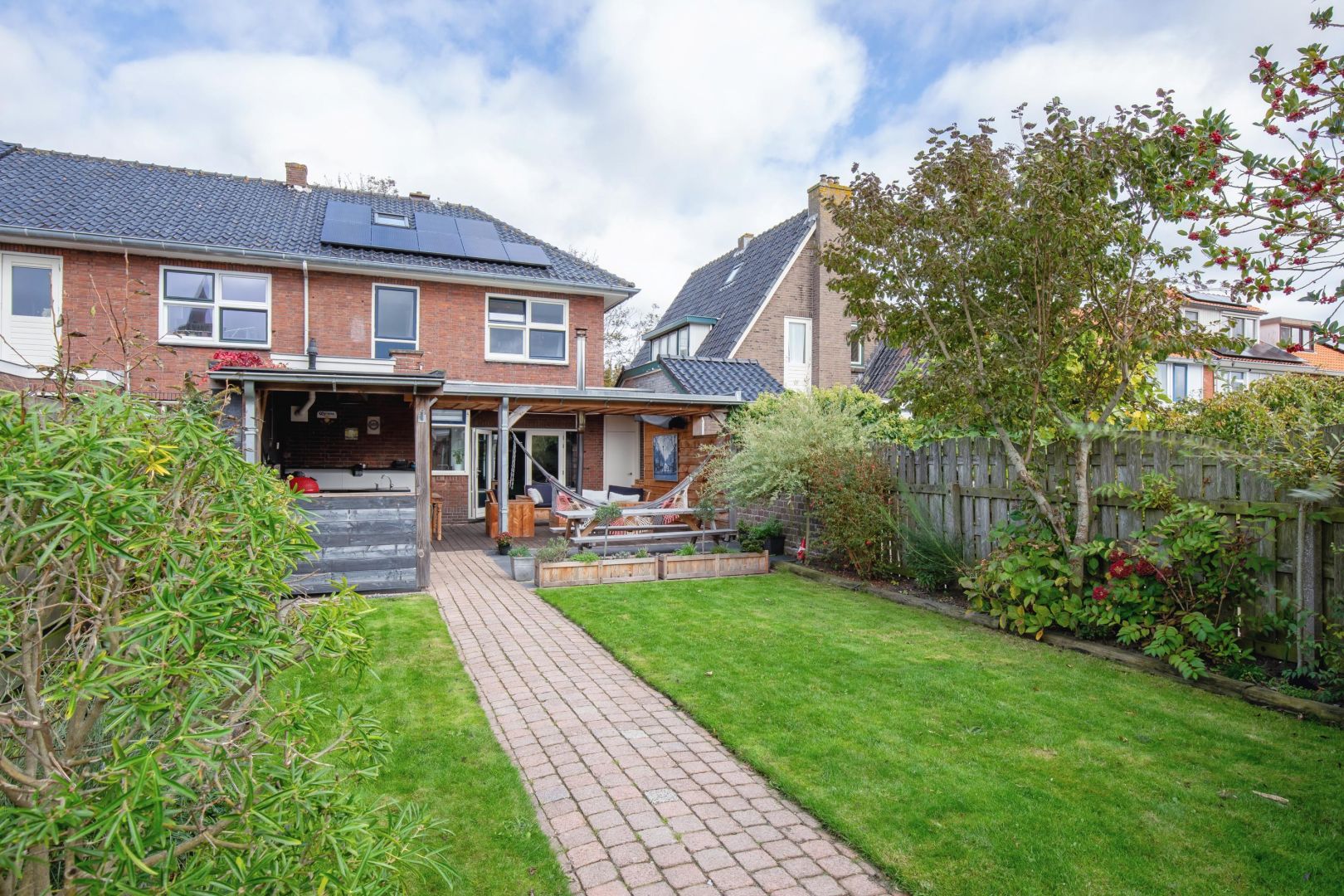 De tuin (met een diepte van circa 20 meter) heeft een ruime overkapping (2022) waar u heerlijk kunt genieten van lange zomeravonden of gezellig samen borrelen met familie en vrienden. Gelegen op het zuidwesten kunt u hier ook nog eens relaxen in de zon! Er is een vrijstaande berging (ca 12 m2) aanwezig en naast de woning is een steeg en er is aan de achterzijde een poort naar het Achterom, aan deze zijde van het perceel kunt u eventueel nog een parkeerplek op eigen terrein creëren. De woning is in 2025 aan de buitenzijde geschilderd.