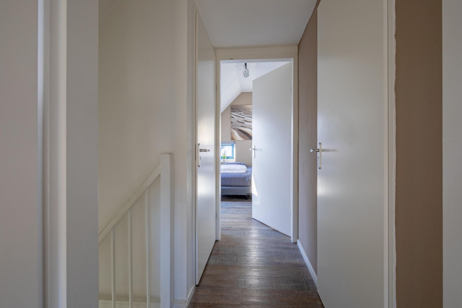 Op de overloop is een praktische bergkast aanwezig, ideaal voor het opbergen van linnengoed en persoonlijke spullen.