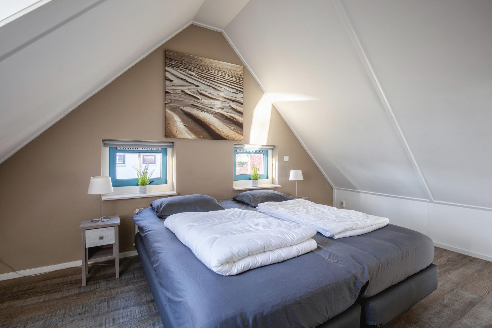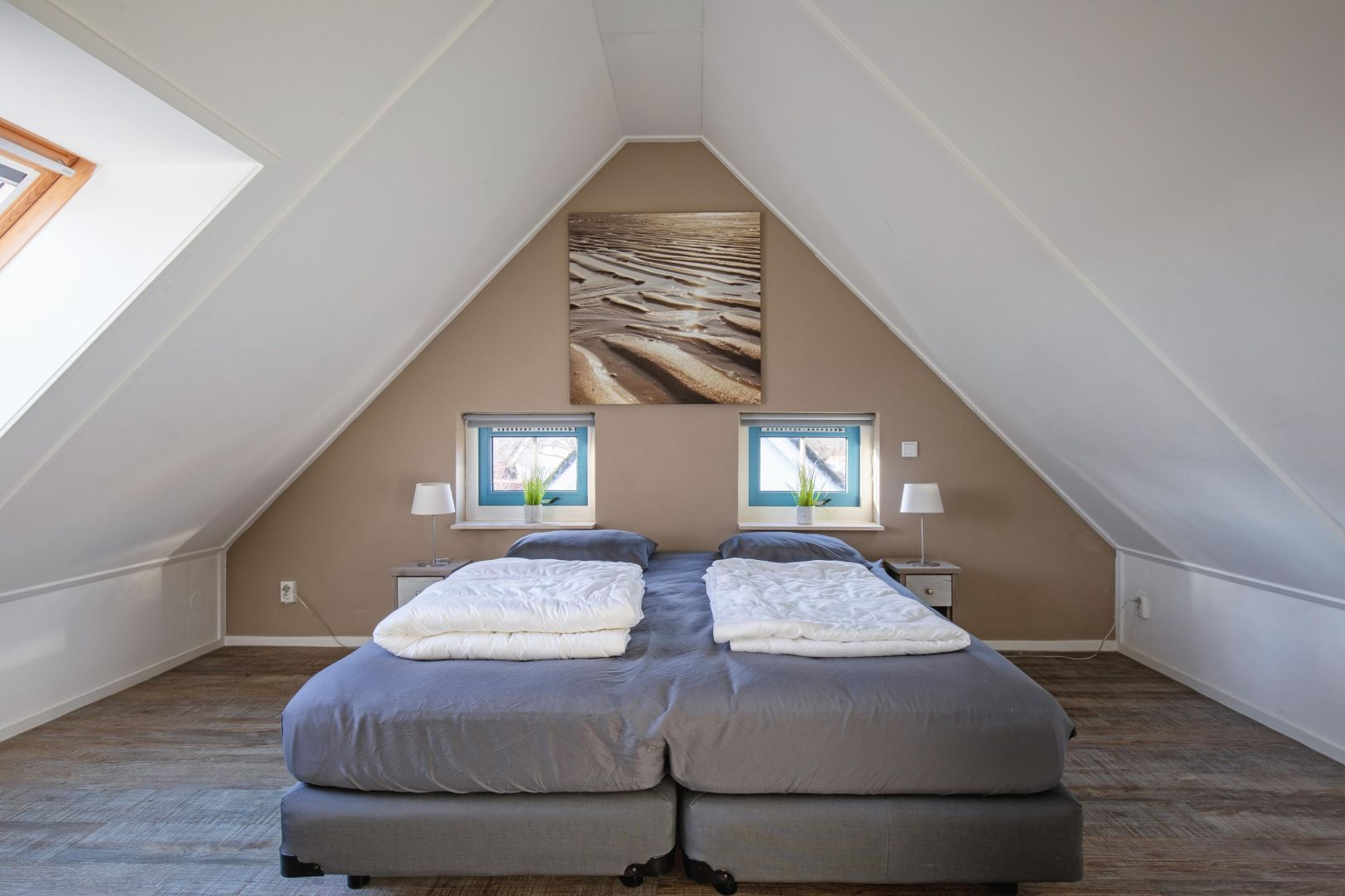 Op de verdieping bevinden zich twee ruime slaapkamers, beide geschikt voor twee personen. Daarnaast is er een tweede badkamer (gemoderniseerd in 2024) met dakkapel, voorzien van een ligbad/douche, tweede toilet en wastafel, wat extra comfort biedt voor meerdere gasten.
