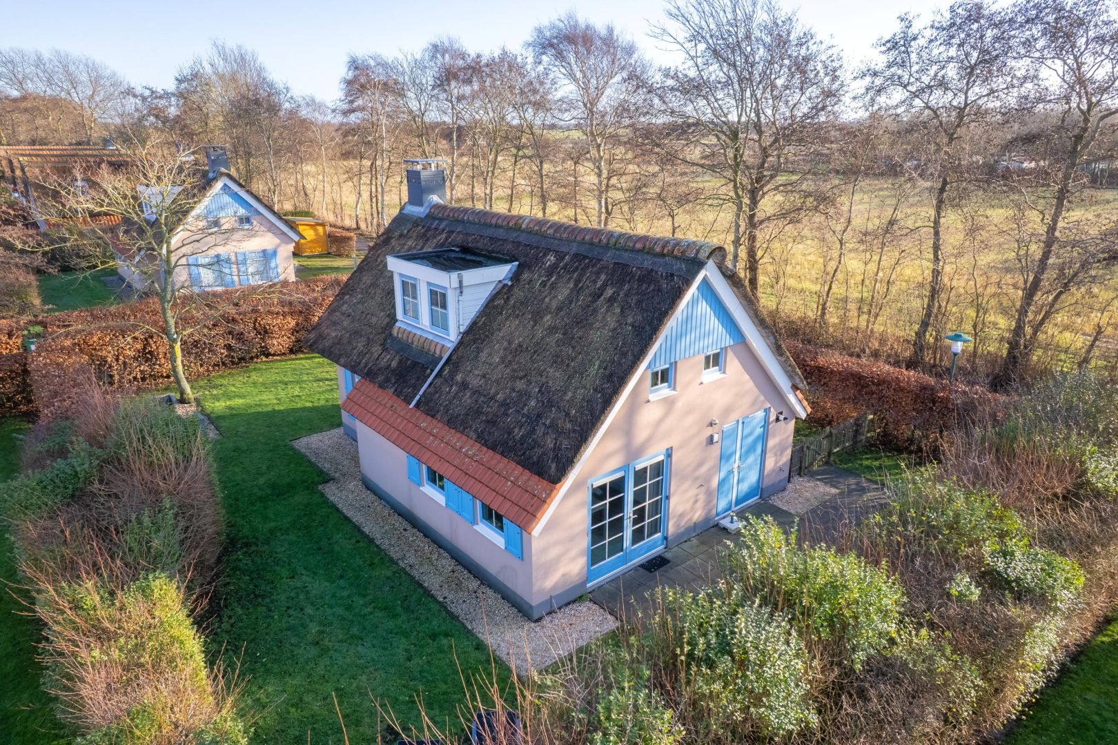 Op een geliefde en rustige locatie aan de buitenzijde van Kustpark Texel, staat deze vrijstaande, rietgedekte recreatiewoning op een perceel eigen grond van 420 m². Een ideale plek om te genieten van rust en comfort op het eiland, terwijl de woning zich ook uitstekend leent voor toeristische verhuur, maar er is echter geen verhuurverplichting. Met bos, strand, duinen en badplaats De Koog op korte afstand is dit een fijne uitvalsbasis. Het zicht op de naastgelegen weilanden maakt dit een bijzondere plek.