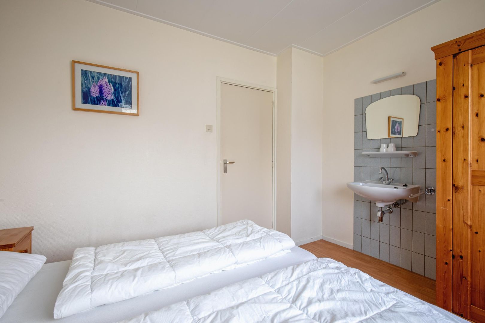 De woning telt drie slaapkamers. In de ruime 2-persoons slaapkamer is een wastafel aanwezig. De tweede slaapkamer heeft twee eenpersoonsbedden en in de derde slaapkamer is een stapelbed en ook in deze slaapkamer is een wastafel.