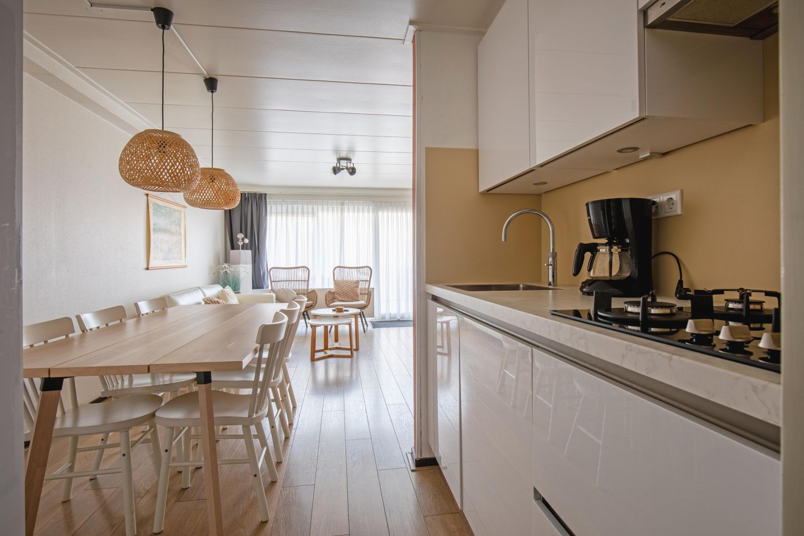 Indeling: via een centrale hal betreedt u de woning. De lichte woonkamer (met schuifpui naar het terras) en prettige indeling zorgen voor een fijne sfeer. Het appartement is recent voorzien van een splinternieuwe, moderne keuken (inclusief Quooker), compleet uitgevoerd en perfect geschikt voor comfortabel verblijf van gasten.