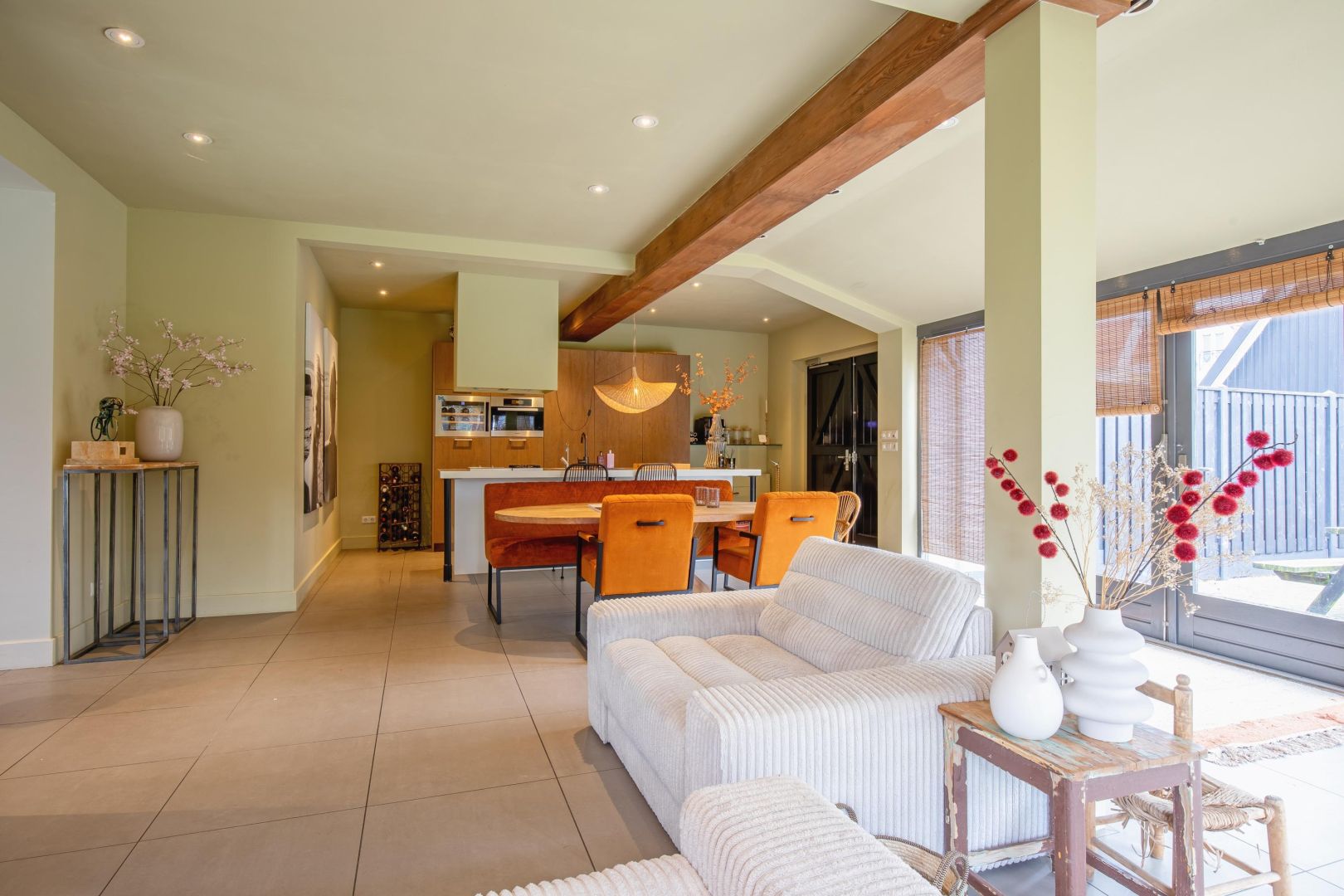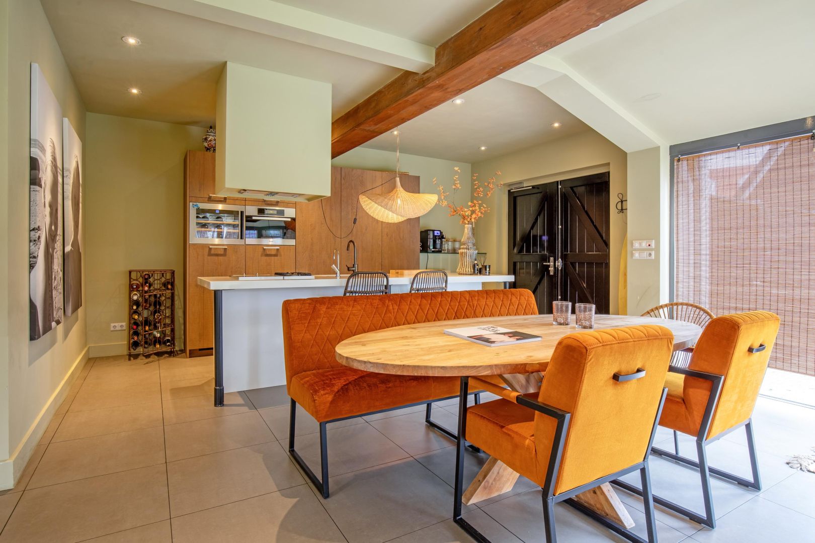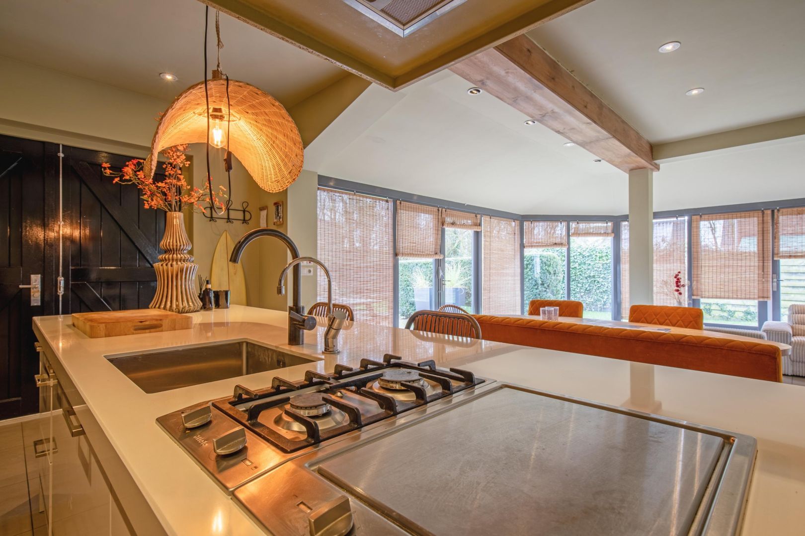 De woning is in 2006 royaal uitgebouwd met een woonkeuken (v.v. vloerverwarming) met openslaande deuren naar de tuin en een sfeerhaard. De open keuken beschikt over een kookeiland, spoelbak, kookplaat, afzuigkap, koel-/vriescombinatie, magnetron, oven en vaatwasser. In de keuken zijn karakteristieke houten boerderijdeuren naar de tuin.