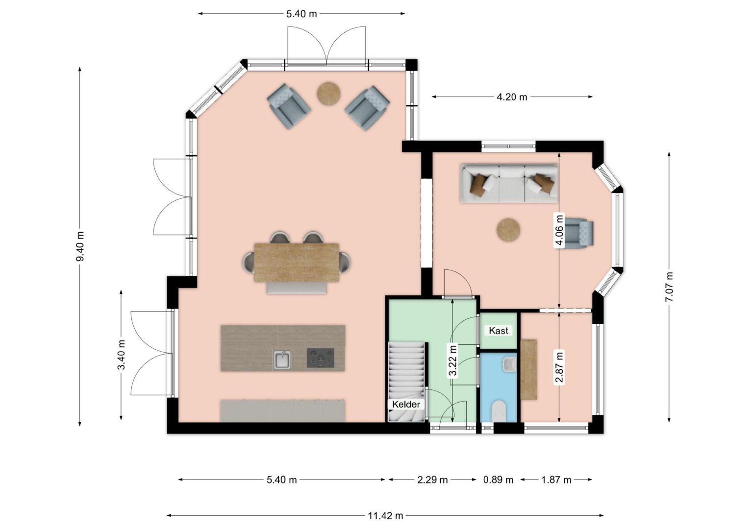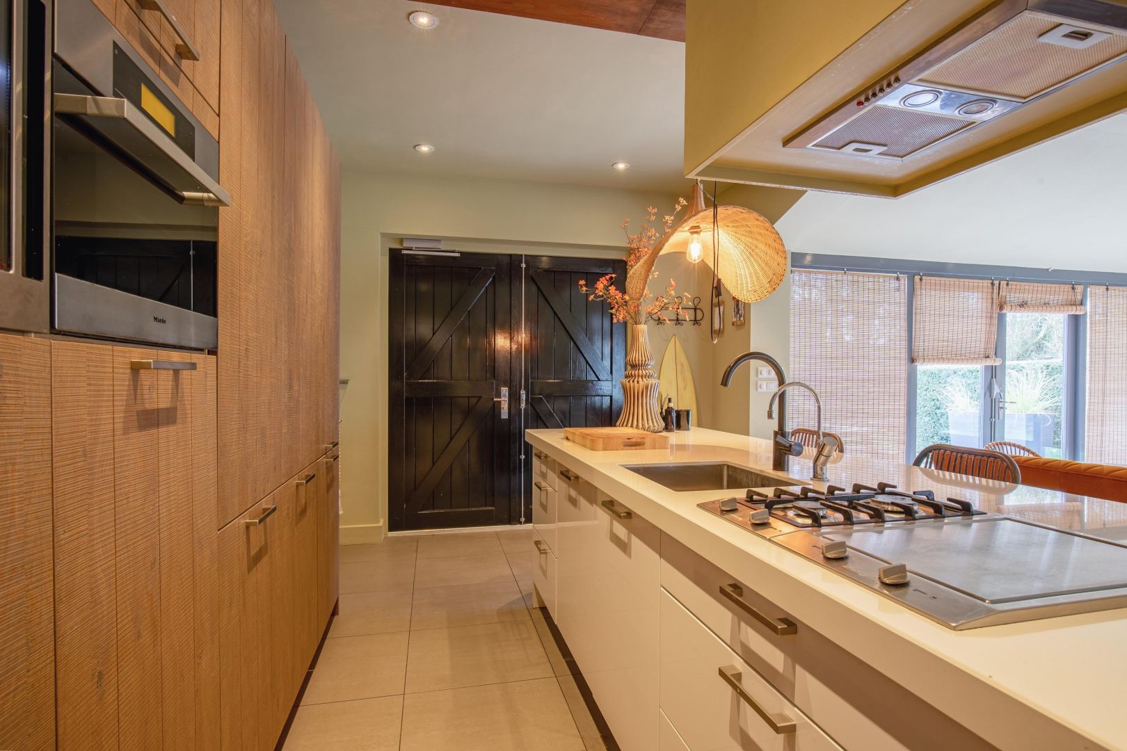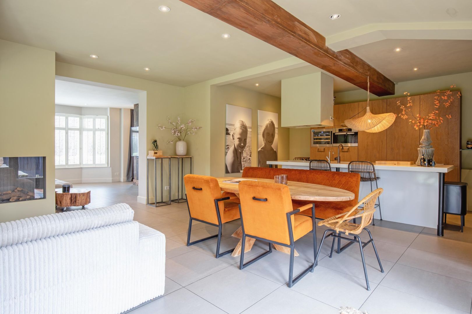 De woning is in 2006 royaal uitgebouwd met een woonkeuken (v.v. vloerverwarming) met openslaande deuren naar de tuin en een sfeerhaard. De open keuken beschikt over een kookeiland, spoelbak, kookplaat, afzuigkap, koel-/vriescombinatie, magnetron, oven en vaatwasser. In de keuken zijn karakteristieke houten boerderijdeuren naar de tuin.