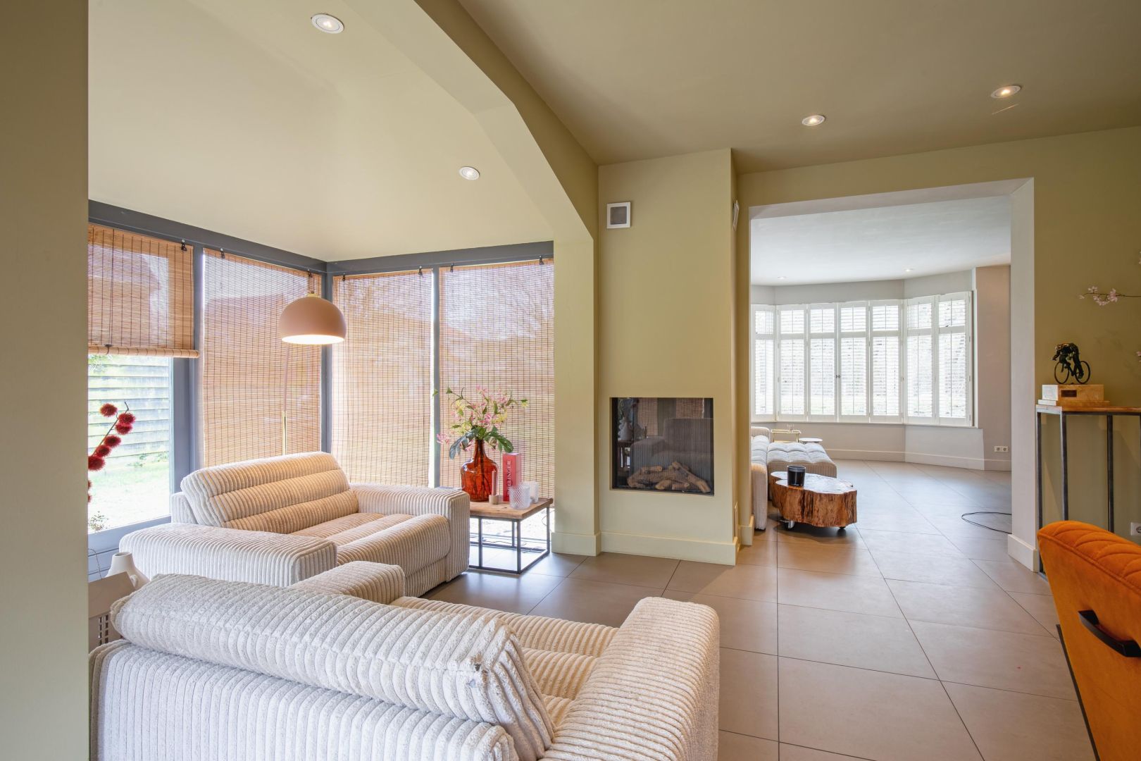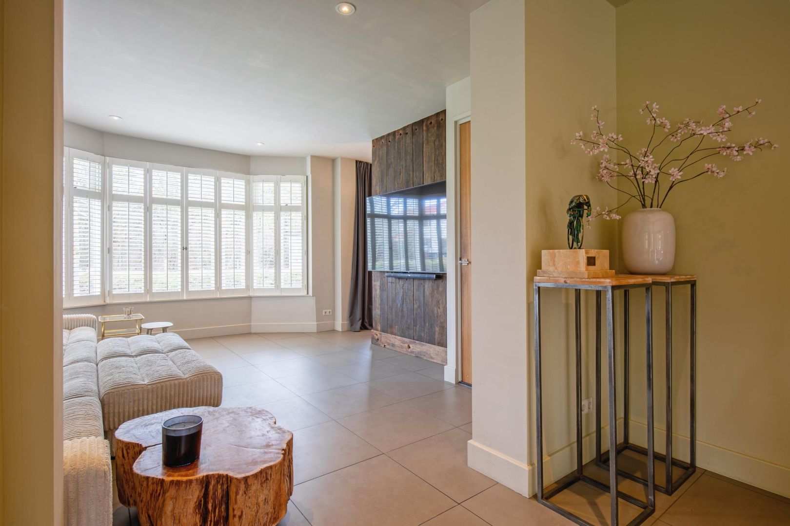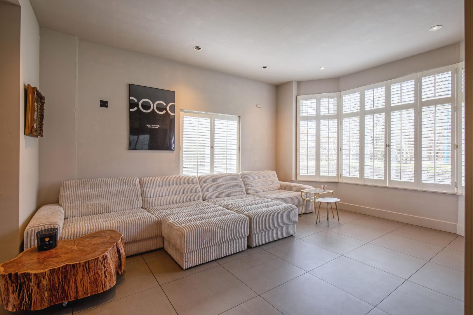 De woonkamer bevindt zich aan de voorzijde en heeft een erker met meerdere raampartijen. De aangrenzende ruimte naast de woonkamer is geschikt als bijvoorbeeld kantoor. De begane grond is voorzien van een keurige tegelvloer.