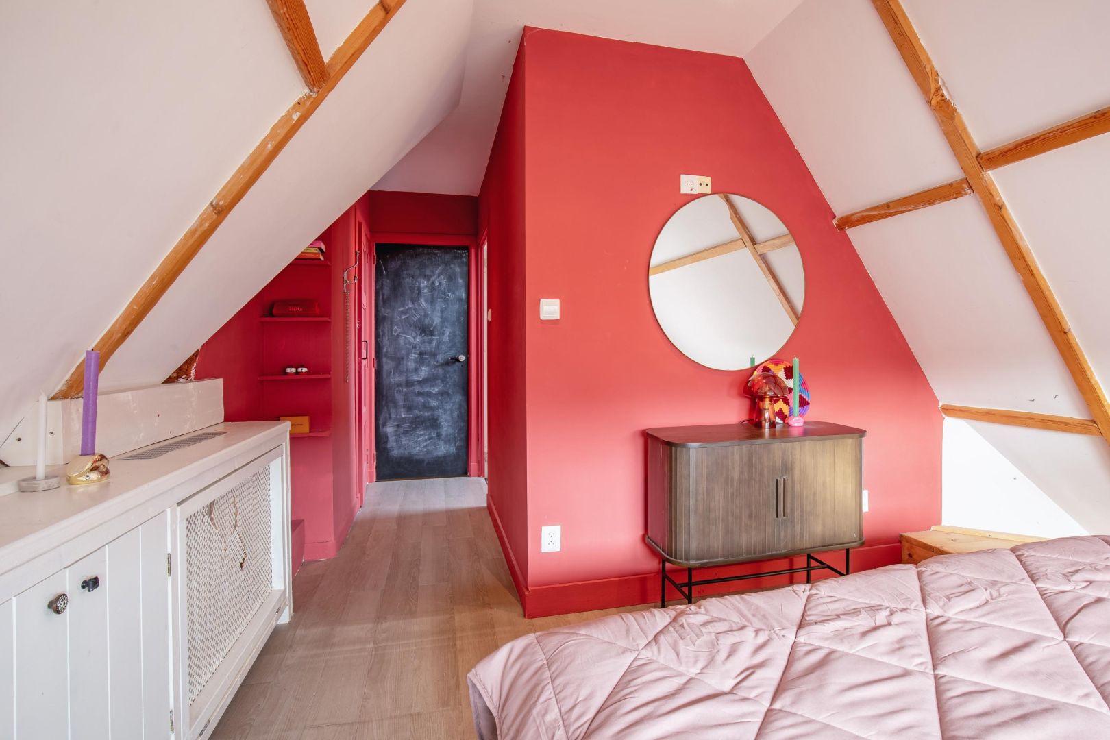 Op de bovenverdieping treft u drie slaapkamers, een badkamer en er is een extra kamer met aansluitingen voor een wasmachine/droger. De aan de voorzijde gesitueerde 2-persoons slaapkamer heeft een dakkapel, vanuit waar u de zon kunt zien ondergaan. In het aangebouwde gedeelte bevindt zich de tweede slaapkamer en in de derde slaapkamer zijn twee dakkapellen en een ingebouwde kastenwand.