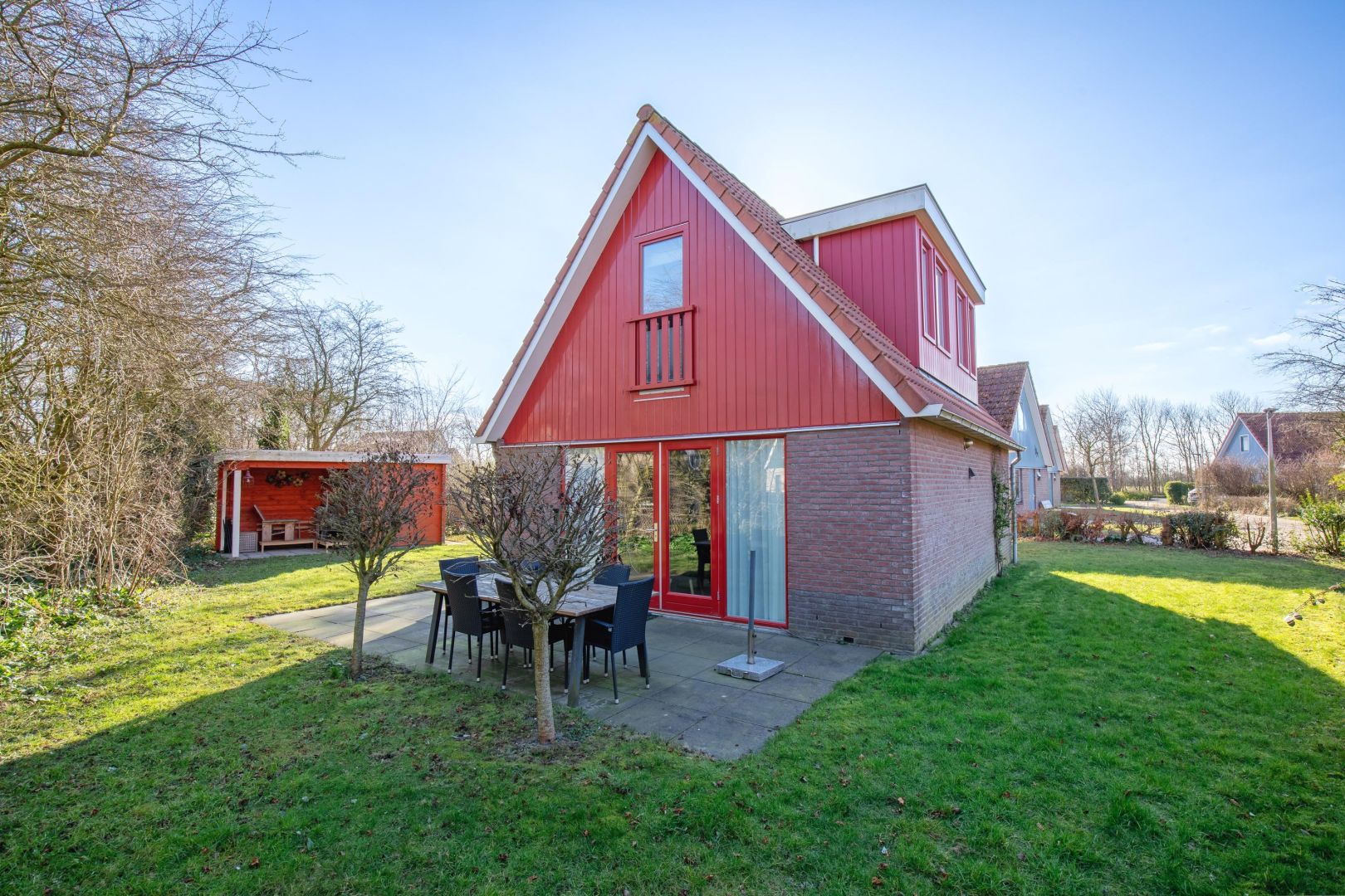 De tuin rondom de woning is voorzien van ruim grasveld met een terras en er is parkeergelegenheid op eigen terrein. Er is een houten tuinhuis/lounge (2021) en daarnaast nog een inpandige berging in de woning, die buitenom bereikbaar is. Op het park zijn diverse faciliteiten aanwezig, zoals een speeltuin en een restaurant.