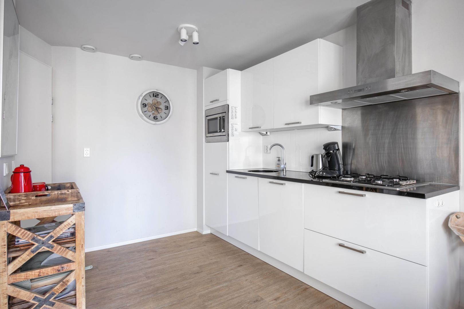 De nette open keuken (2013) beschikt over een spoelbak, 4-pits gaskookplaat, afzuigkap, koelkast met vriesvak, vaatwasser en magnetron.