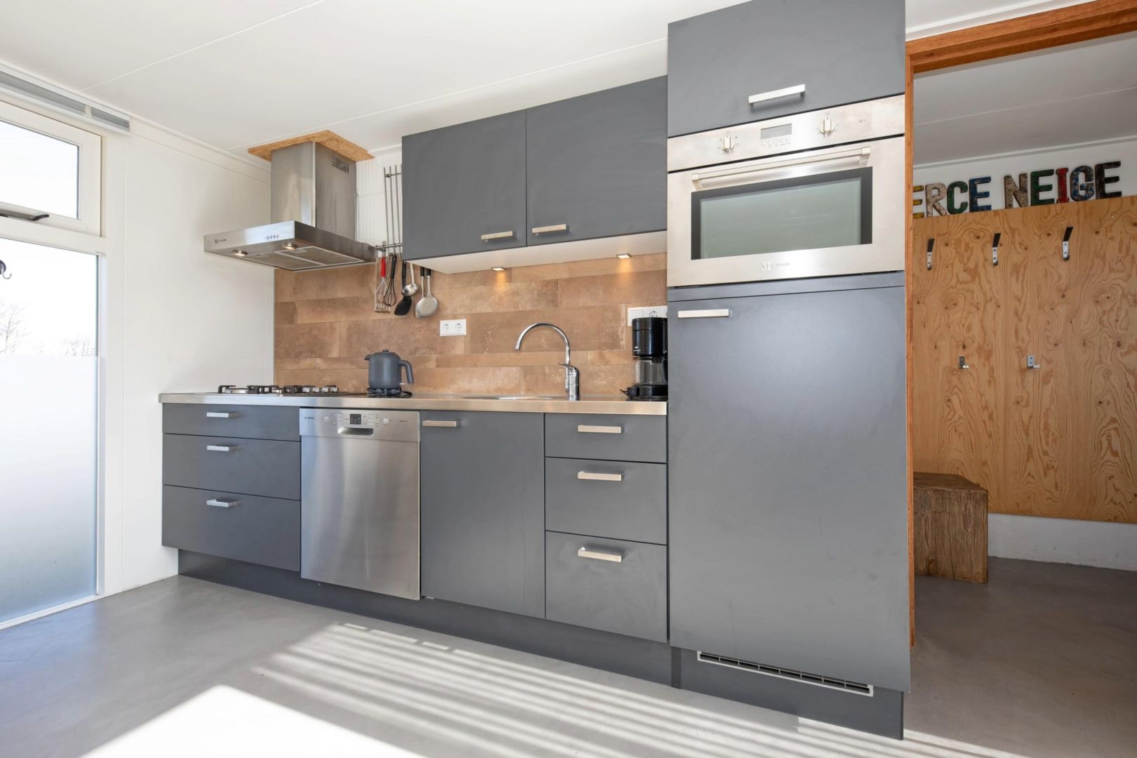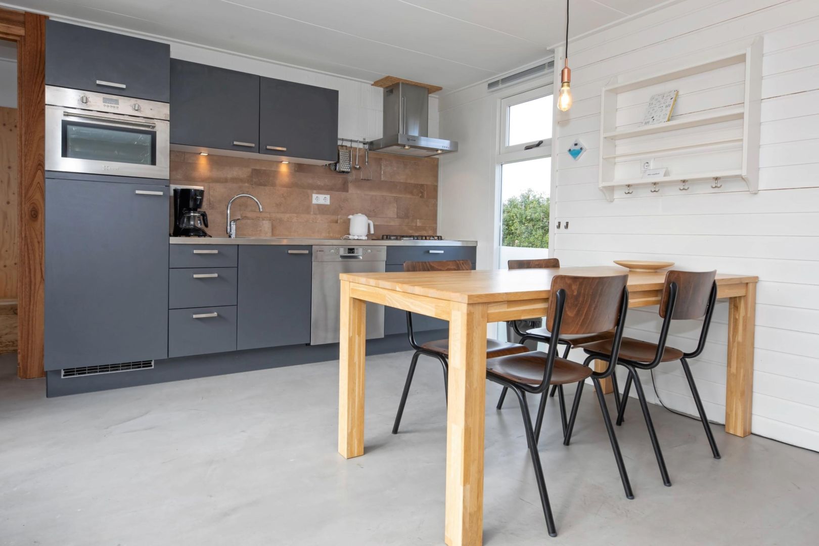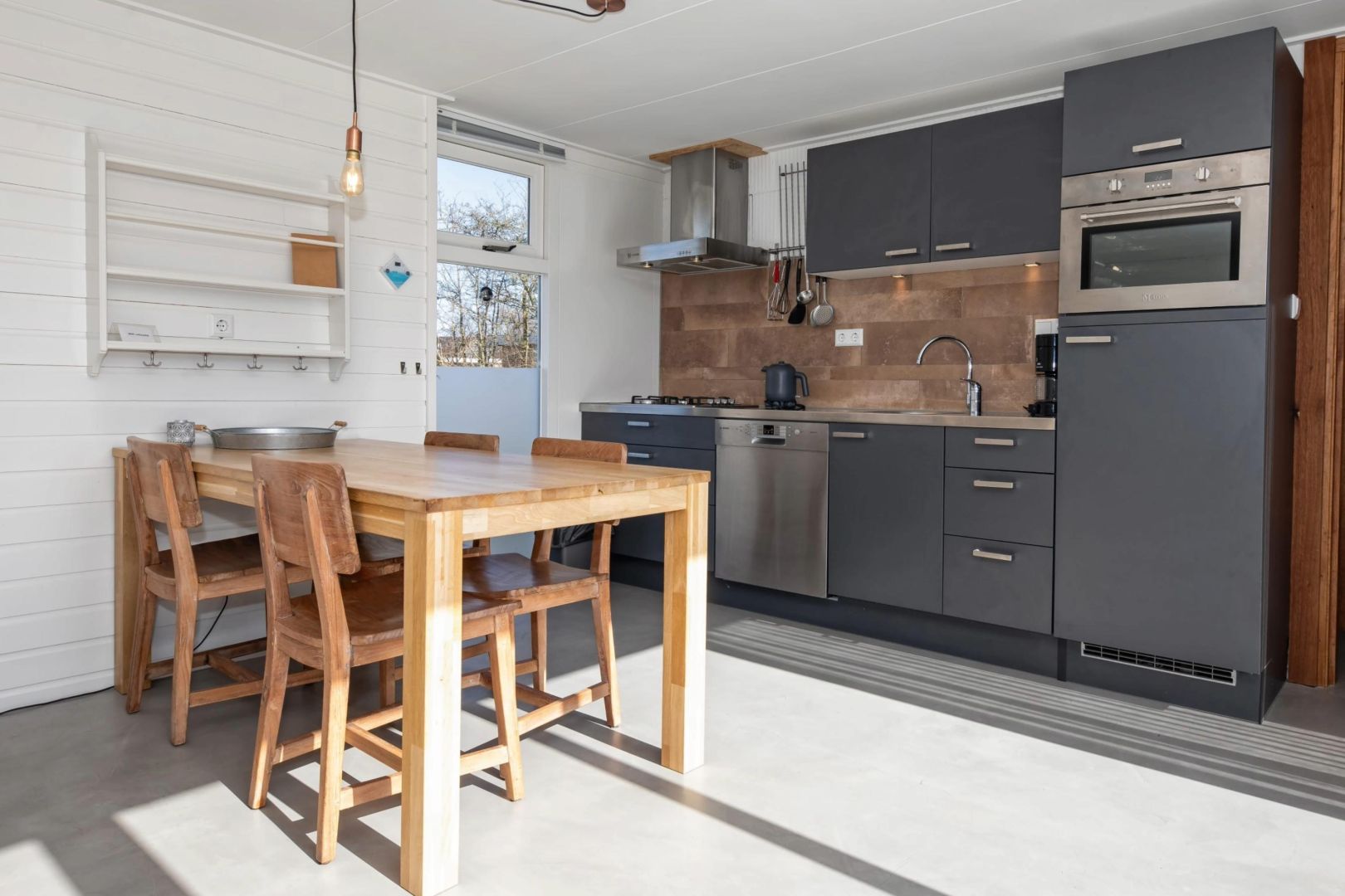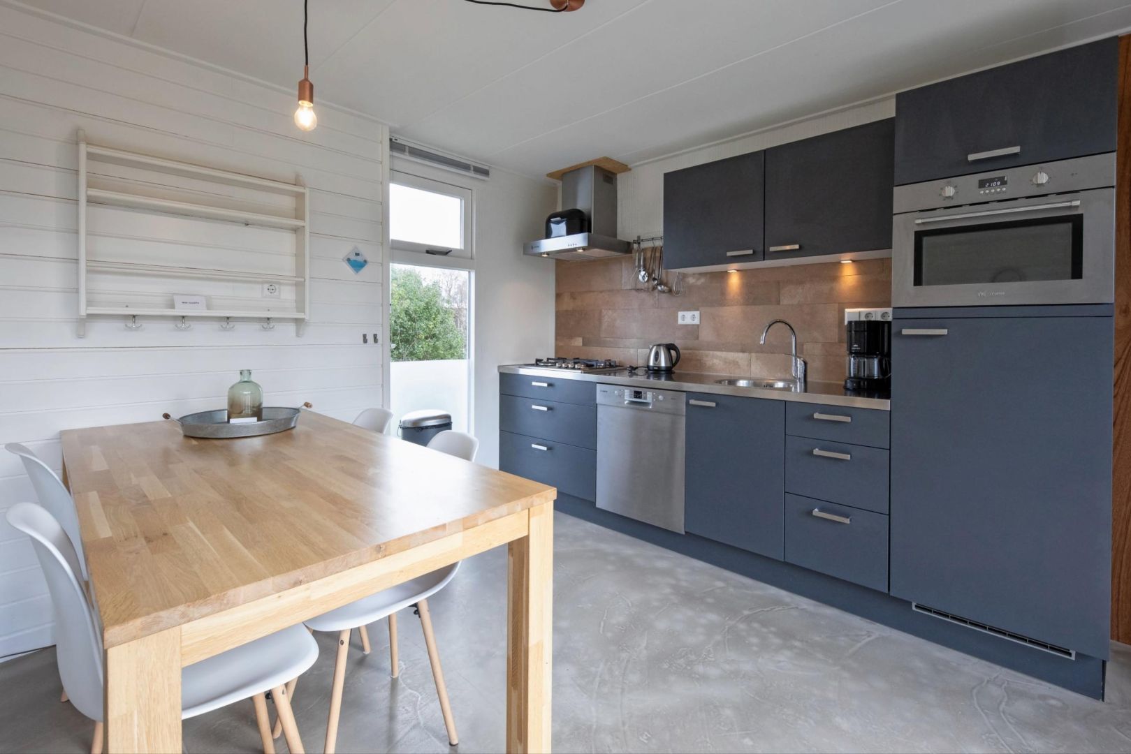 De keukens zijn voorzien van spoelbak, 4-pits gaskookplaat, afzuigkap, koelkast, magnetron en vaatwasser, met daarnaast het eetgedeelte.