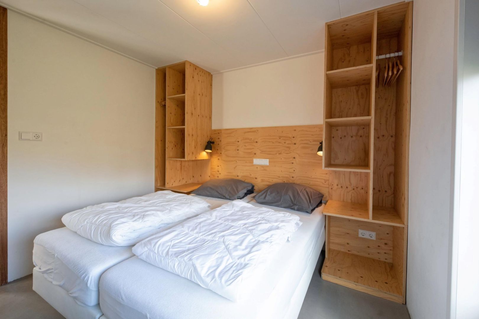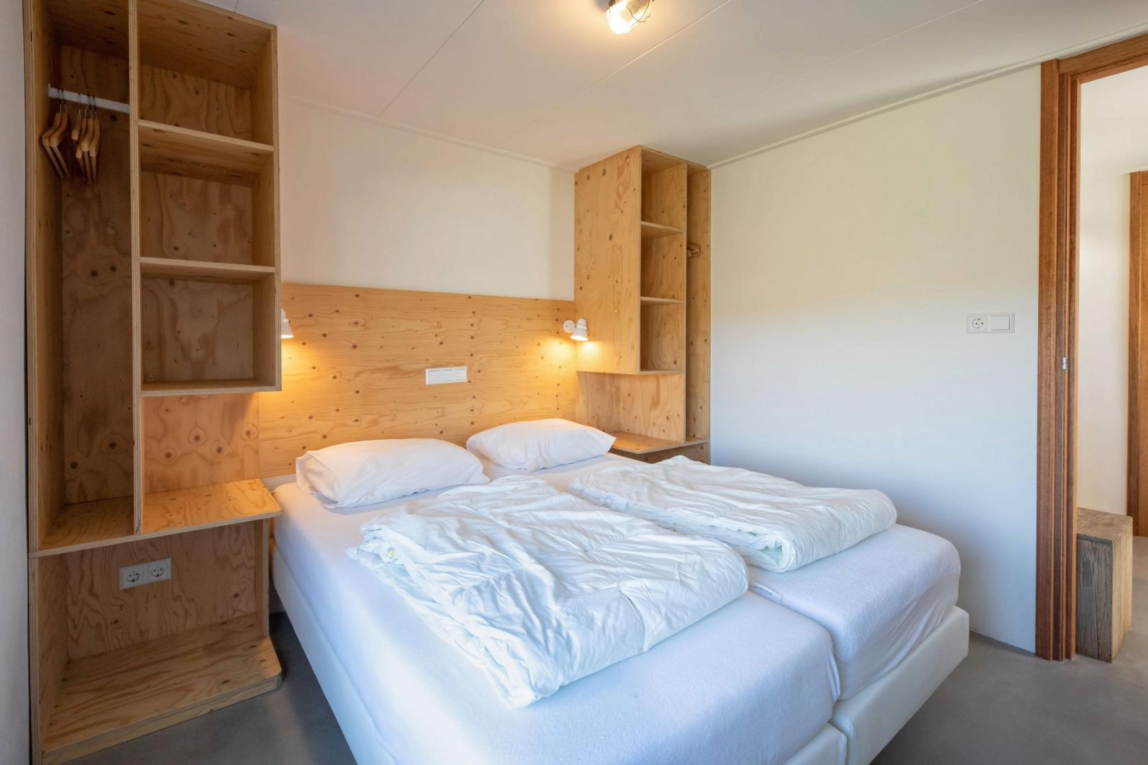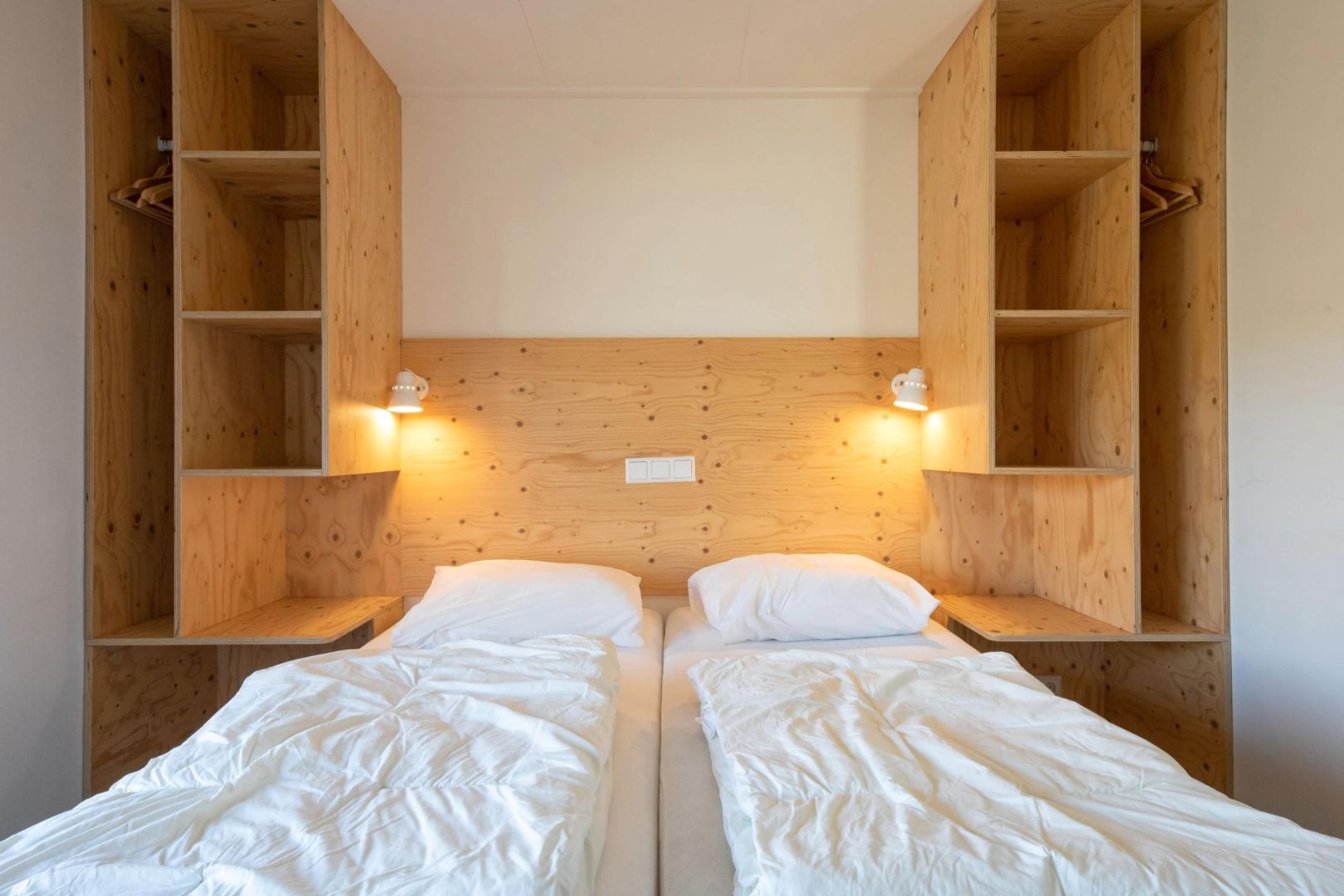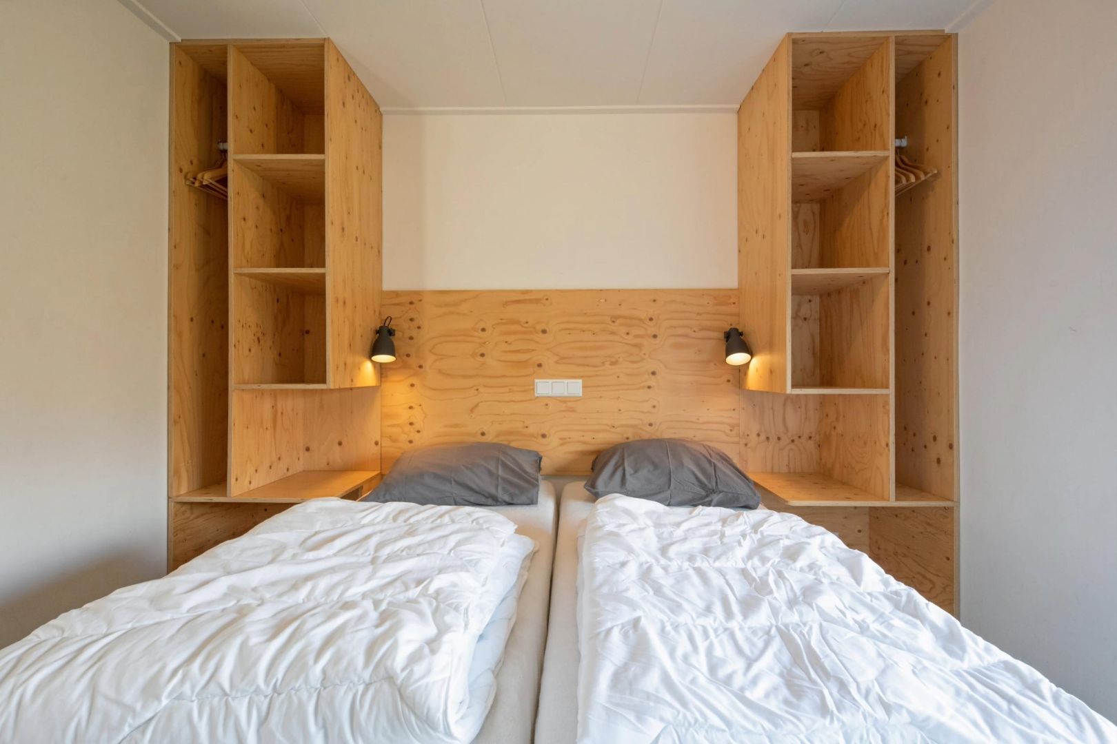 Elke woning telt twee slaapkamers, waarvan er één beschikt over een 2-persoonsbed en in de andere slaapkamer zijn twee éénpersoonsbedden.