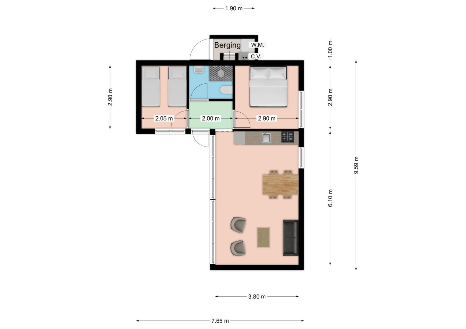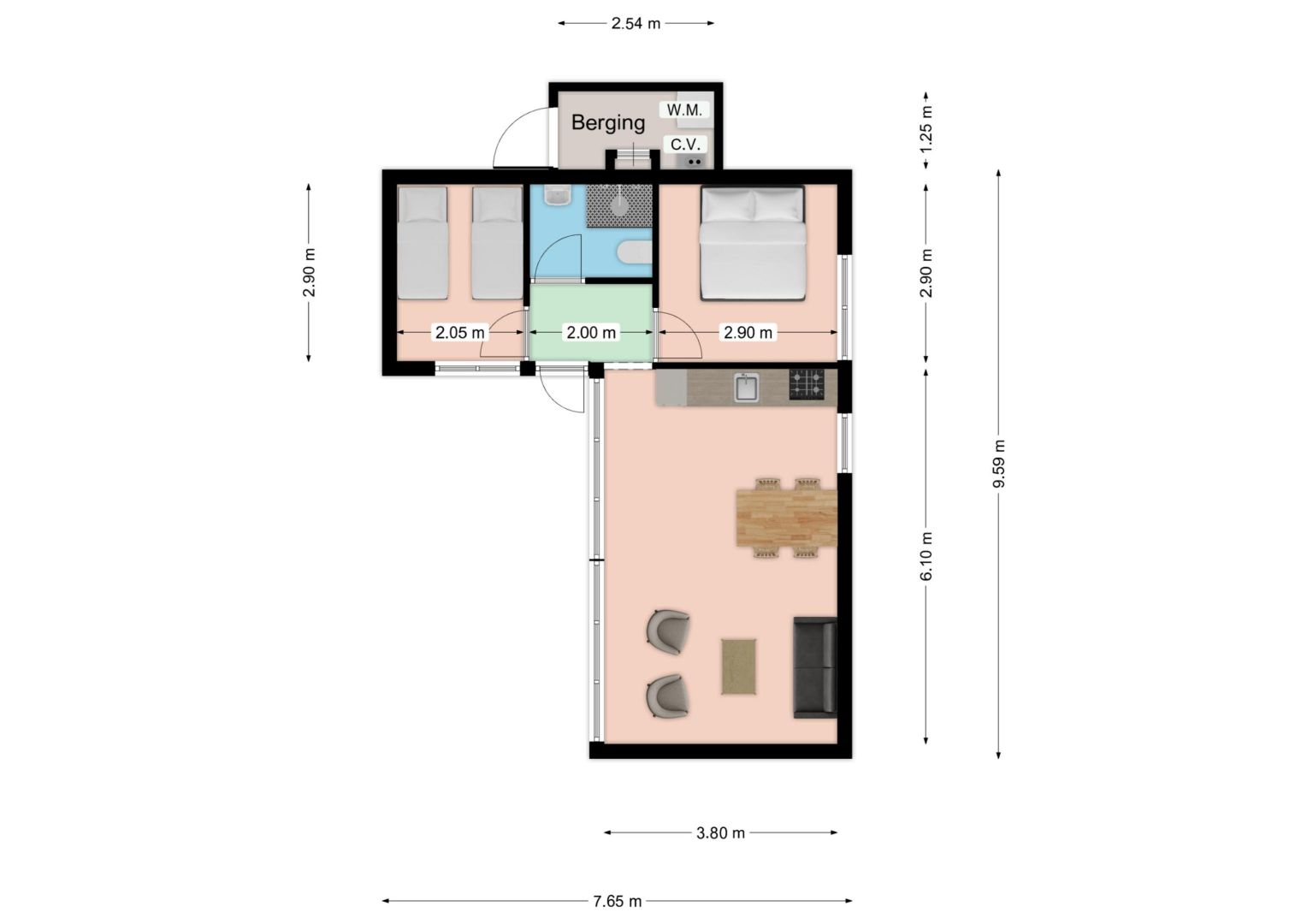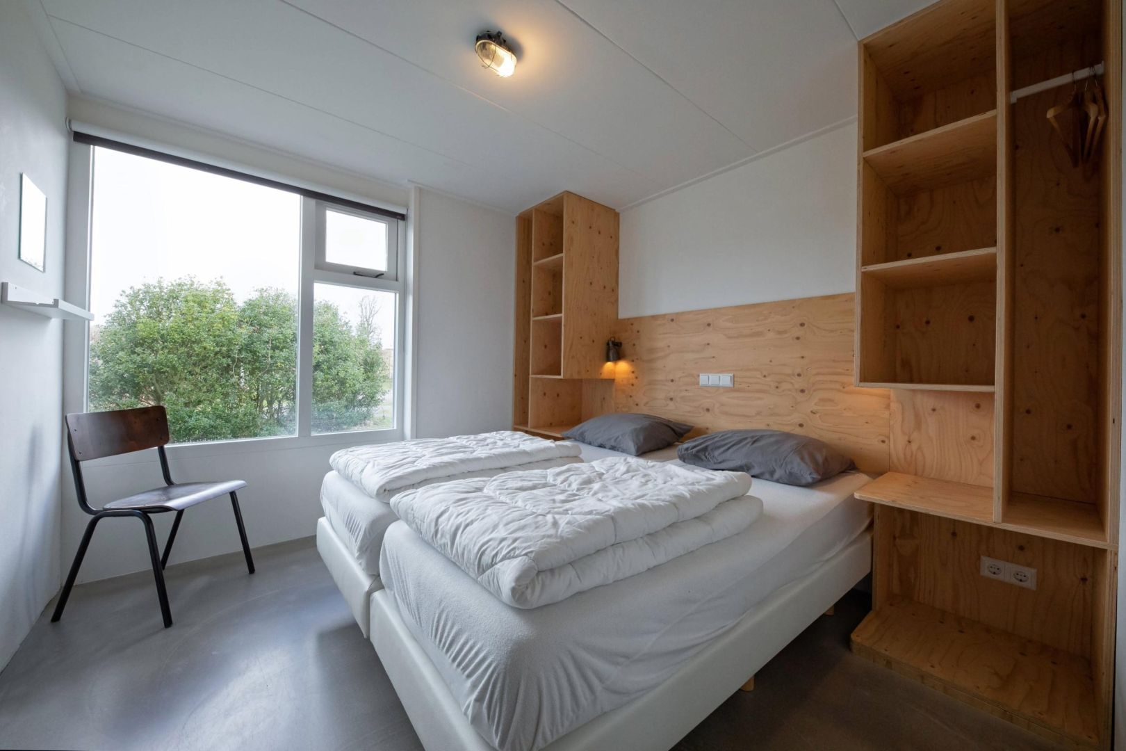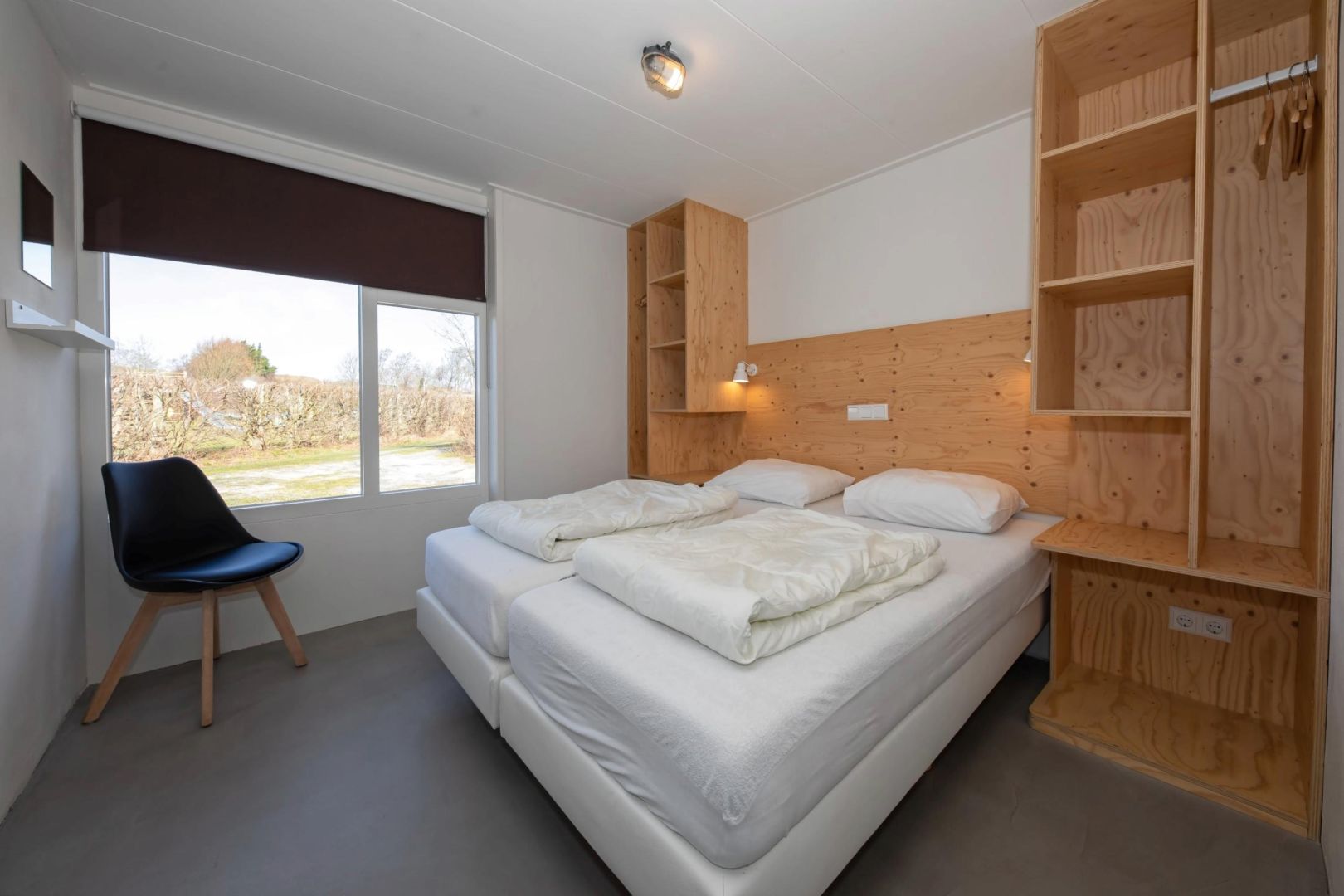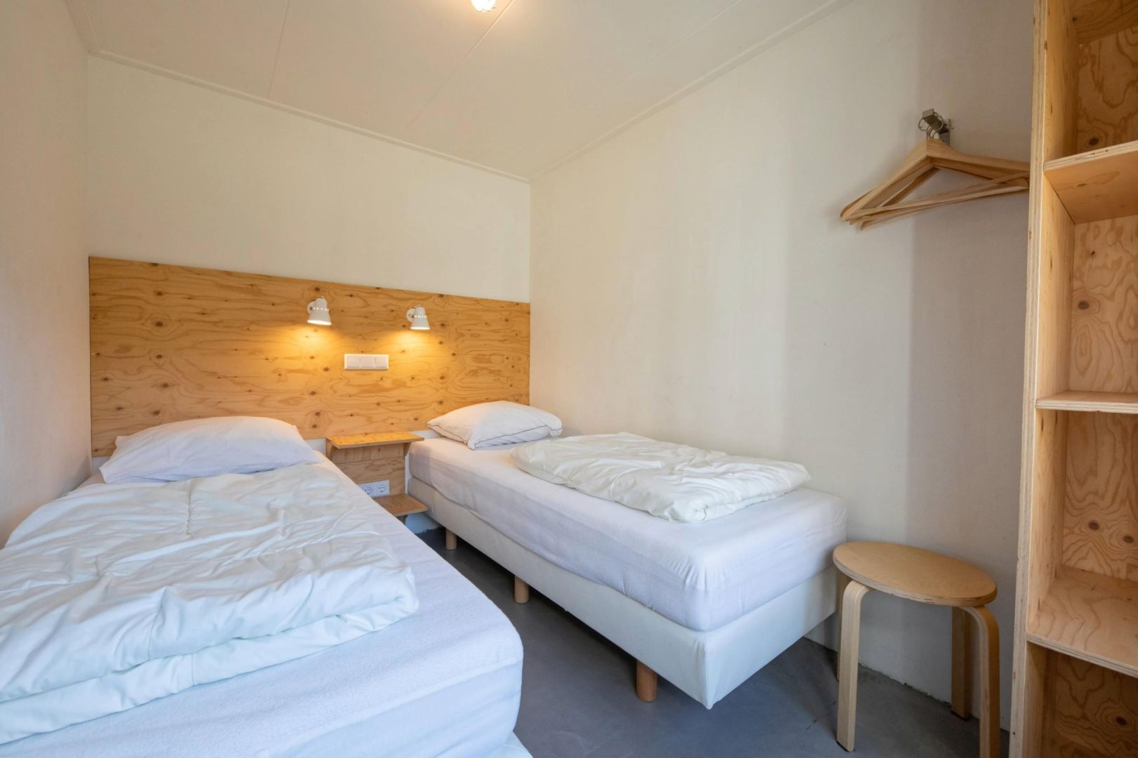 Elke woning telt twee slaapkamers, waarvan er één beschikt over een 2-persoonsbed en in de andere slaapkamer zijn twee éénpersoonsbedden.