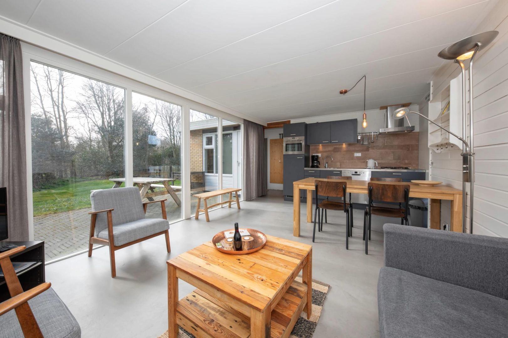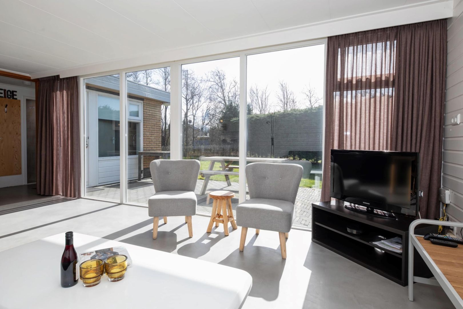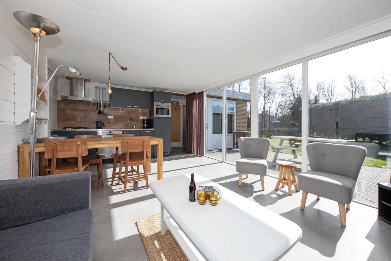 De knusse woonkamers zijn gezellig ingericht en bieden zicht op de tuin. Dankzij de raampartijen valt het zonlicht prettig naar binnen, wat zorgt voor een lichte en uitnodigende sfeer. De woningen zijn voorzien van vloerverwarming.