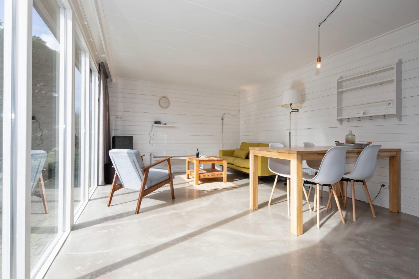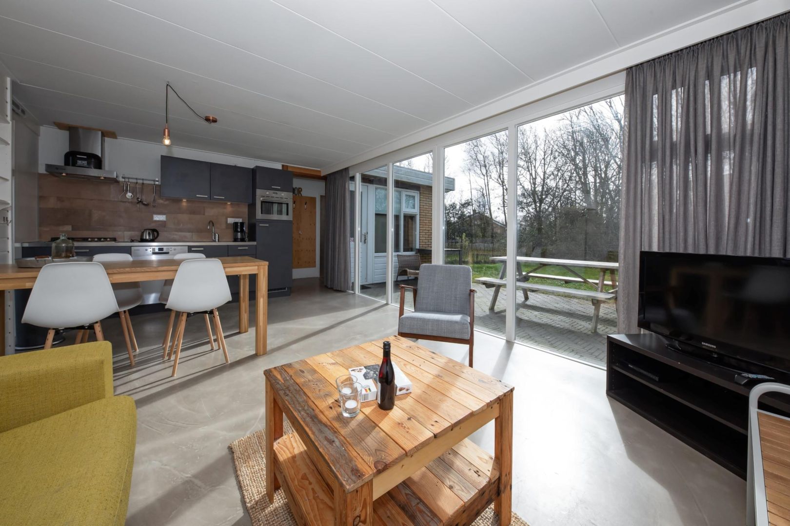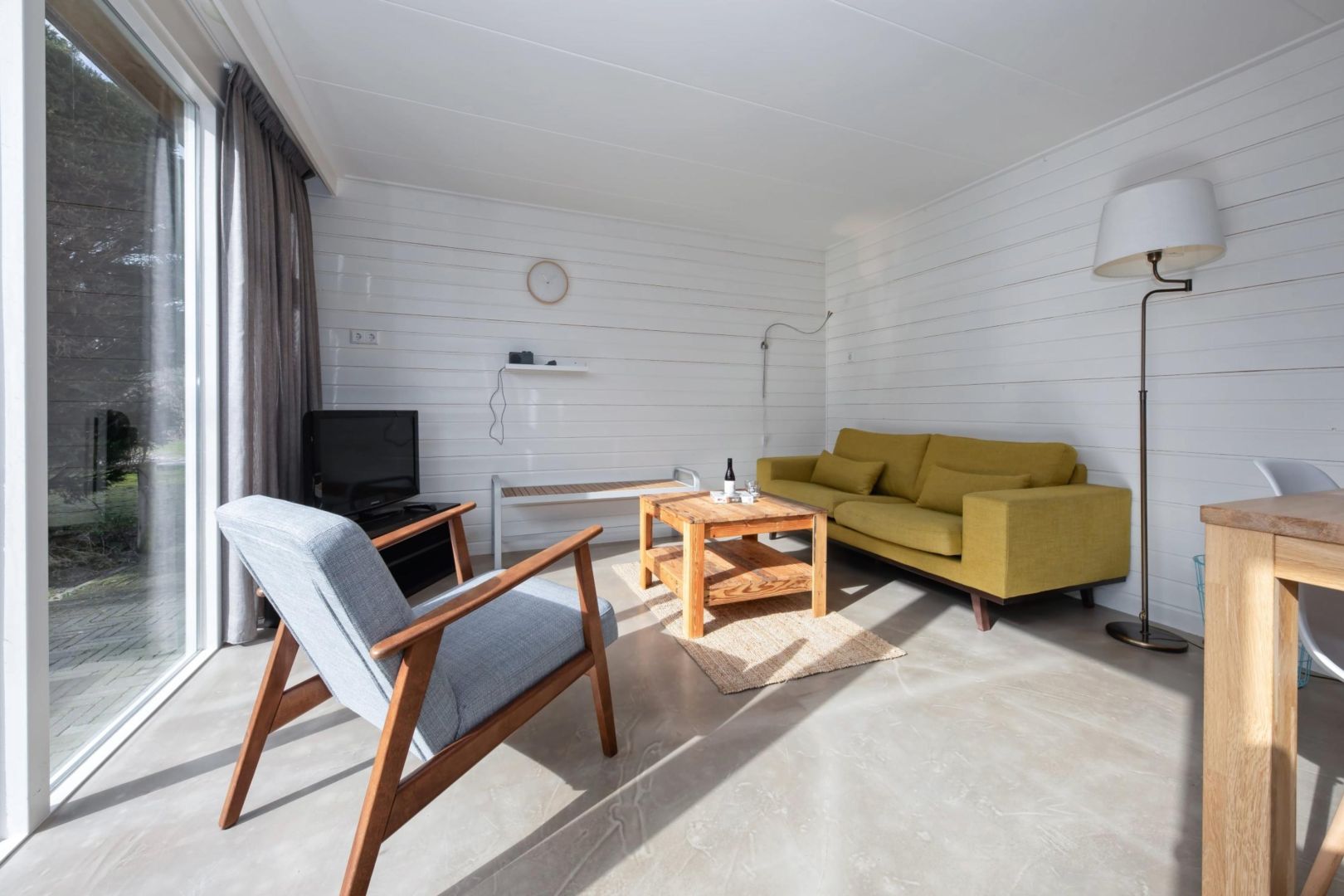 De knusse woonkamers zijn gezellig ingericht en bieden zicht op de tuin. Dankzij de raampartijen valt het zonlicht prettig naar binnen, wat zorgt voor een lichte en uitnodigende sfeer. De woningen zijn voorzien van vloerverwarming.